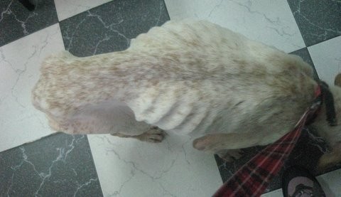 Positive leishmaniose (le rein n'est pas touché) et positive ehrlichiose et avec une anémie terrible... les mamelles lui tombaient presque jusqu'au sol, ses chiots avaient dû mourir de faim, elle n'avait pas dû avoir de lait... son état était lamentable...