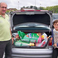 Le fils d'isabelle a donné un bon coup de main pour vider les caddies et mettre les croquettes dans les coffres et il surveillait les petites.