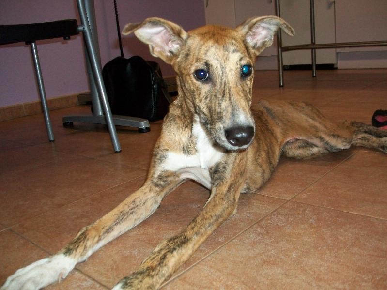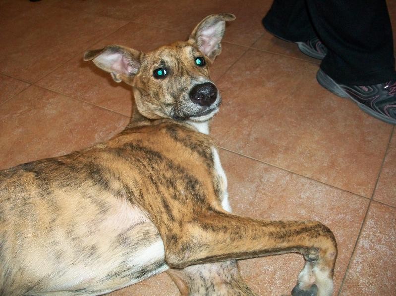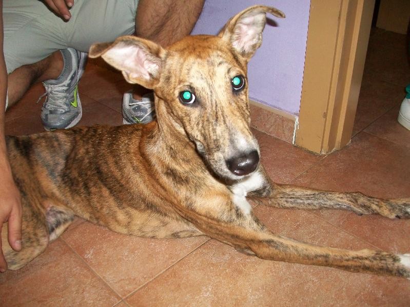 Mambru a environ 7 mois, croisé galgo.
