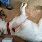 Sur la photo, Kratos était endormi pour sa stérilisation et la blessure a été nettoyée...