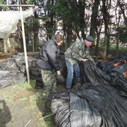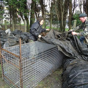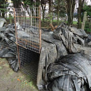 Nous sommes donc allés installer la cage-trappe à l'endroit où il a l'habitude de dormir, au milieu des bâches, cachée...