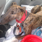 Costa est calme, mange et boit. On prévient tout le monde. Il fait chaud , je roule vers Aix-en-Provence fenêtres entre-ouvertes. Costa est allongée (il n'y a plus que la place de la gamelle d'eau) et le nez redressé sur le dossier pour capter l'air frais.