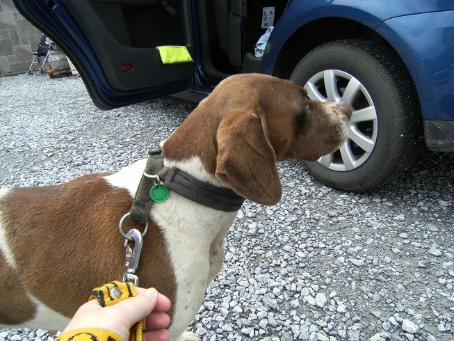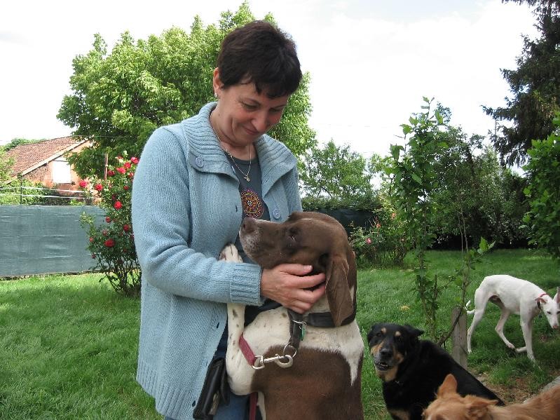 Fabienne et Bruno m'ont porté CAOBA . Elle est en bonne santé , pas maigre , très demandeuse de calins , très douce et tranquille . Nous l'avons présenté à la meute , elle n'a pas eut trop peur