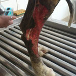 Rien de grave en apparence mais l'état de sa patte s'est dégradé très rapidement. Les vétérinaires n'expliquent pas comment le blessure a pu se dégrader autant.