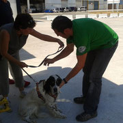 propriétaire espagnol : Eduardo . J'ai pris le relai pour la communication avec le maitre . Notre voyage étant le 7 septembre , Galgos France a proposé son aide pour ramener Boy à Eduardo , à