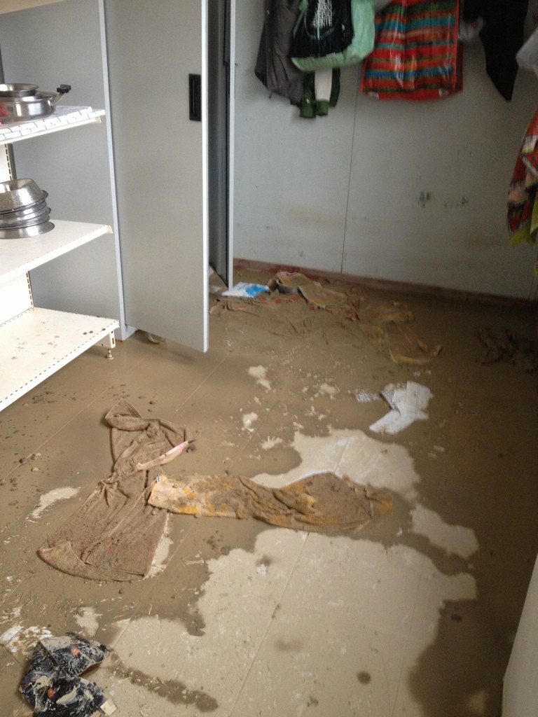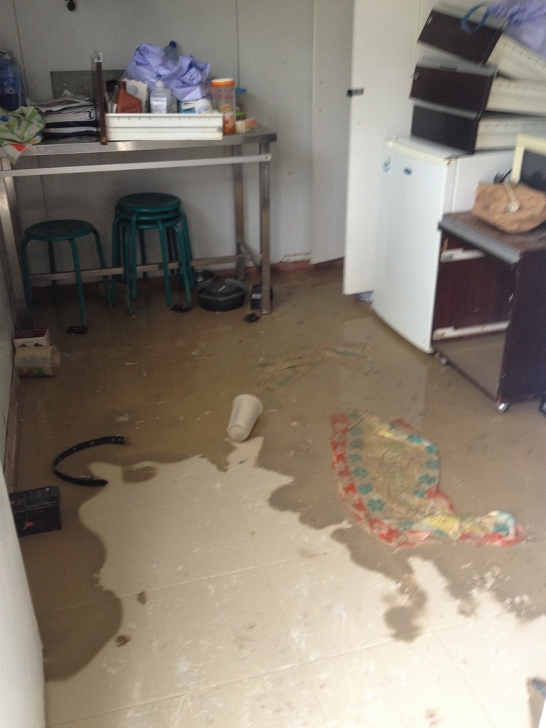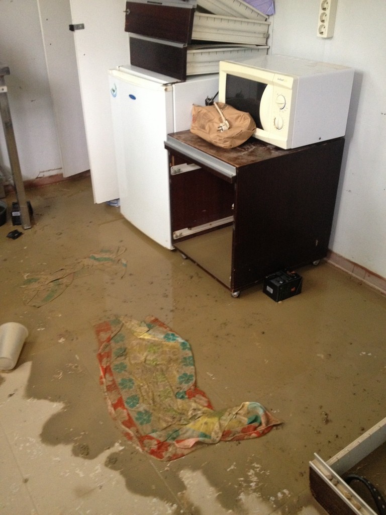 Voici l'aspect désolant du refuge actuellement, tout est sale et cassé. Les puits se sont remplis de boue, les stocks, la pièce où nous étions quelques heures avant...