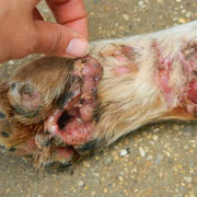 (Attention photos en bas de page difficiles - plaies à la patte)