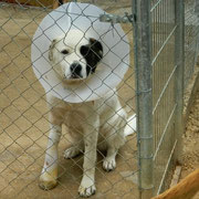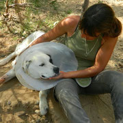 Femelle croisée mastin de 35 kilos, elle peut avoir environ 2 ans, trouvée dans un état lamentable sur la rive sans issue d'un barrage, comment y est-elle arrivée ? Elle a des blessures horribles à la patte avant droite mais c'est un amour, elle se laisse soigner malgré ce qu'elle doit souffrir.... elle n'arrête pas de lécher nos mains pour nous remercier. Elle a été reccueillie avec des vers à la patte et nous ne savons pas si cette blessure a pu être causée par un piège, elle n'a presque pas de masse musculaire à la patte... le coussinet s'est ouvert avec l'infection. Elle a besoin d'une maison où il y ait de l'hygiène pour ses blessures.