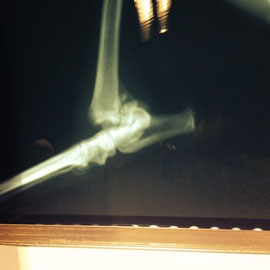 - Le cas de MANCHITA est beaucoup plus grave et délicat. Elle souffre d’une fracture du tarse et de la cheville, avec les os décalés. La fracture est ancienne. L’opération est « lourde », il faut placer une plaque de chaque côté, angulée et faite sur mesure. Et suivant la fracture il est parfois impossible de mettre des plaques… il faut alors couper l'os. La belle aura donc une patte légèrement plus courte, elle aura une boiterie mais plus aucune douleur ni gêne pour courir et vivre normalement ! Le coût de l’opération de fixation de l’articulation est de l’ordre de 700€.