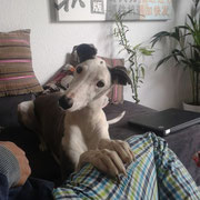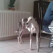 Puis début mai, une généreuse famille d'accueil a ouvert son foyer à Zenit ! Et devinez quoi ? Ce beau galgo va y déposer ses valises puisque sa famille a décidé de l'adopter. Merci à elle ! Vous pouvez le voir heureux sur les photos ci-dessous, dans son nouvel environnement.