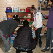 Dimanche après-midi, Elisa notre petite "responsable boutique" est venue, accompagnée d'Isa, Anne,Corinne et Nelly, remplir et décorer le petit chalet qui vous attendra désormais à l'arrivée du