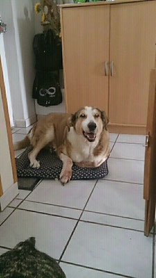 Positive leishmaniose, Laika a également de l'arthrose. Mais c'est un amour de louloute qui ne demande qu'à trouver un bon panier retraite.
