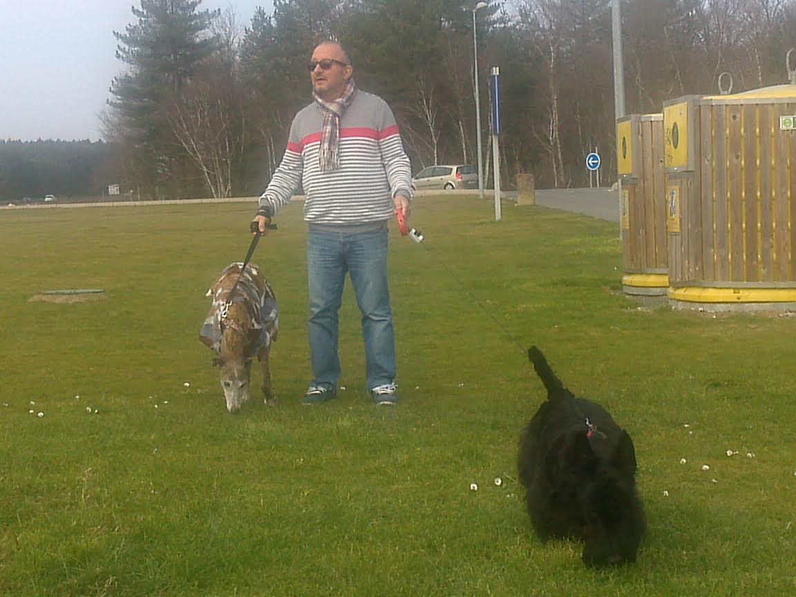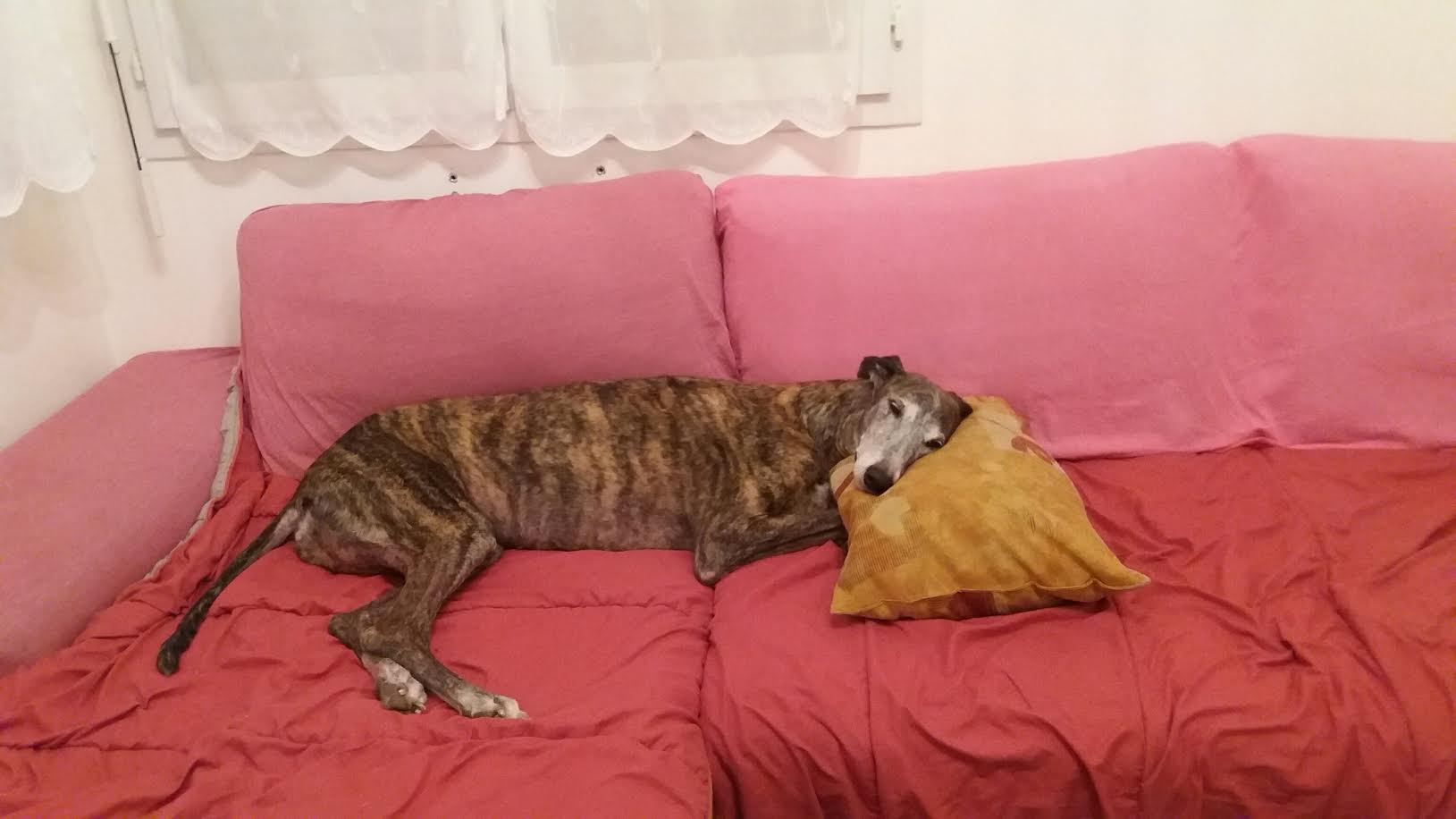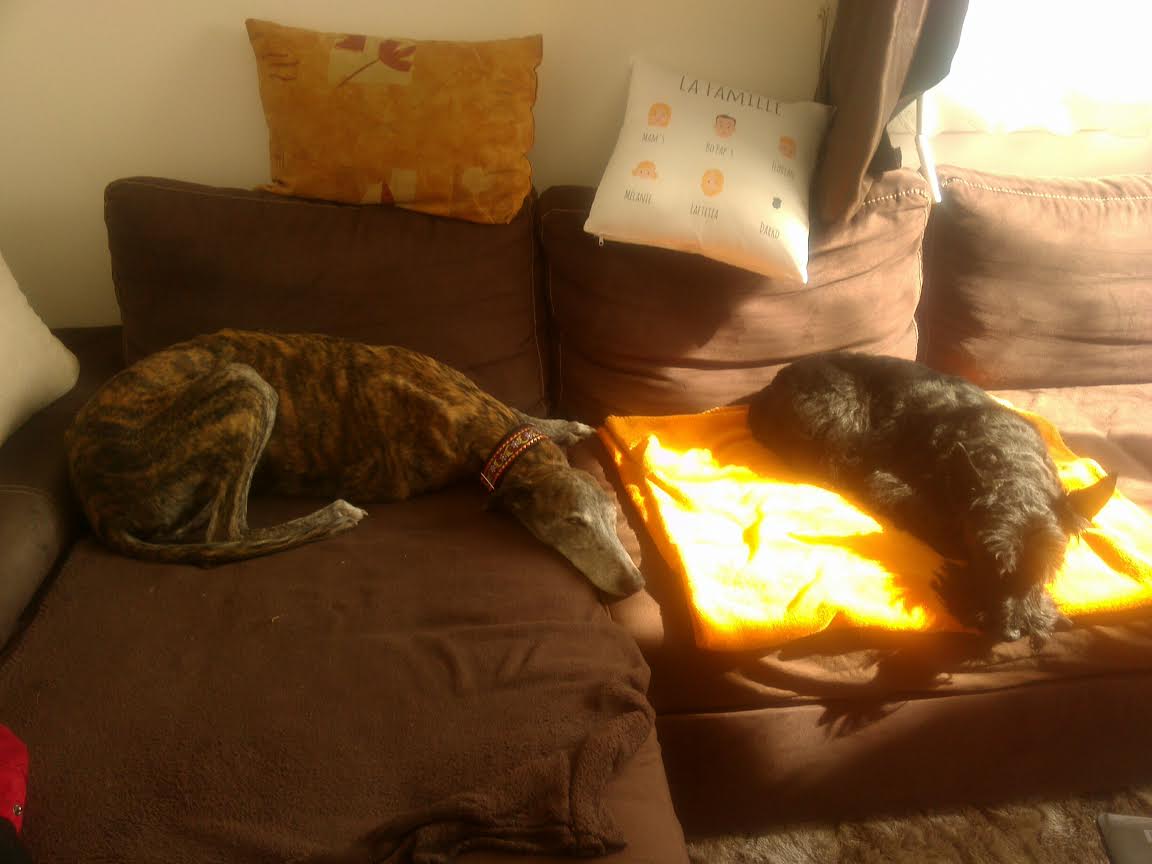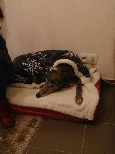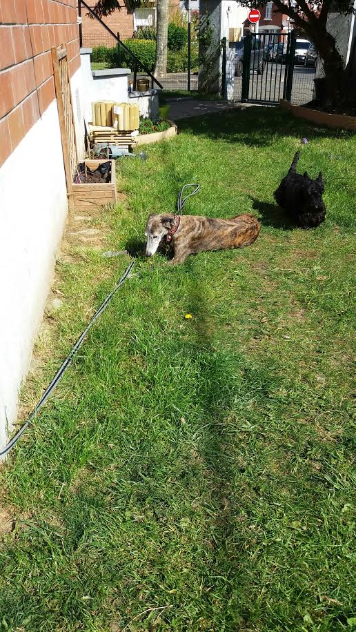 13 mars 2016, nous avons enfin pu découvrir ta jolie frimousse, ce moment de bonheur extrême restera à jamais gravé dans mon coeur. Nous avons eu quelques heures de voiture (9 h env) pour apprendre à nous connaître un peu. Puis tu es rentrée dans ta nouvelle et dernière maison, tu étais très inquiète, trop de monde pour toi sans doute, mais ta nouvelle famille était trop impatiente de faire ta connaissance. Il t'a fallu très peu de temps pour te sentir en sécurité, le trop plein de bisous et de caresses t'a vite montré que tu pouvais couler des jours tranquilles sans inquiétude. À partir de ce moment là c'est une autre Tricia que nous avons rencontrée, tes petits moments de folie avec Darko et Moustic, tes aboiements pour m'accueillir lorsque je revenais du travail, nos ballades où tu as failli m'embarquer avec toi lorsque tu as vu un lapin (quelle frayeur ce jour-là). Le temps que nous avons passé ensemble a été court, très court, beaucoup trop court. 3 mois de bonheur puis 3 mois de mélange entre souffrance et accalmie. Cette maudite Thrombo Embolie Aortique Primaire a eu raison de toi plus vite que prévu. Nous avons espéré que le traitement t'aiderait à tenir quelques années sans souffrance. Malheureusement tu as manqué de temps. Le 8 septembre nous avons dû prendre cette terrible décision de te laisser partir. Pourquoi le destin s'est acharné sur toi ??? Je ne comprends pas, ce n'est pas juste. Nous allons devoir apprendre à vivre sans toi, quel vide énorme tu laisses dans nos cœurs, une partie de moi est partie avec toi. Merci ma petite trissounette pour la confiance que tu nous as accordée, pour ta douceur et ces moments merveilleux que nous avons vécus ensemble. Vole ma beauté, va courir à en perdre haleine, rattrape tout ce temps perdu tu l'as bien mérité. Merci à l'association pour avoir croisé le chemin de Tricia, cela a permis qu'elle puisse entrer dans notre vie et nous marquer à jamais de son empreinte et tout particulièrement à toi Laure, merci d'avoir toujours été présente pour nous, surtout dans cette terrible épreuve.