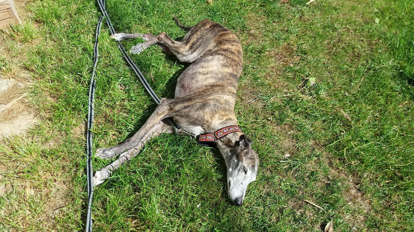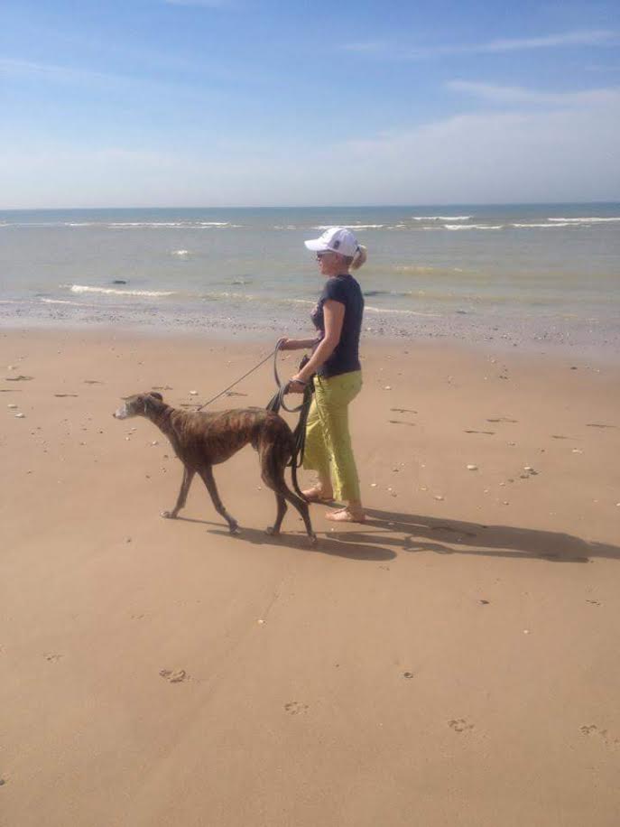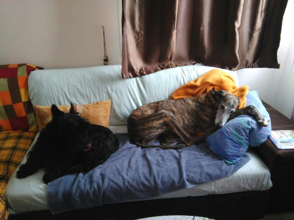 13 mars 2016, nous avons enfin pu découvrir ta jolie frimousse, ce moment de bonheur extrême restera à jamais gravé dans mon coeur. Nous avons eu quelques heures de voiture (9 h env) pour apprendre à nous connaître un peu. Puis tu es rentrée dans ta nouvelle et dernière maison, tu étais très inquiète, trop de monde pour toi sans doute, mais ta nouvelle famille était trop impatiente de faire ta connaissance. Il t'a fallu très peu de temps pour te sentir en sécurité, le trop plein de bisous et de caresses t'a vite montré que tu pouvais couler des jours tranquilles sans inquiétude. À partir de ce moment là c'est une autre Tricia que nous avons rencontrée, tes petits moments de folie avec Darko et Moustic, tes aboiements pour m'accueillir lorsque je revenais du travail, nos ballades où tu as failli m'embarquer avec toi lorsque tu as vu un lapin (quelle frayeur ce jour-là). Le temps que nous avons passé ensemble a été court, très court, beaucoup trop court. 3 mois de bonheur puis 3 mois de mélange entre souffrance et accalmie. Cette maudite Thrombo Embolie Aortique Primaire a eu raison de toi plus vite que prévu. Nous avons espéré que le traitement t'aiderait à tenir quelques années sans souffrance. Malheureusement tu as manqué de temps. Le 8 septembre nous avons dû prendre cette terrible décision de te laisser partir. Pourquoi le destin s'est acharné sur toi ??? Je ne comprends pas, ce n'est pas juste. Nous allons devoir apprendre à vivre sans toi, quel vide énorme tu laisses dans nos cœurs, une partie de moi est partie avec toi. Merci ma petite trissounette pour la confiance que tu nous as accordée, pour ta douceur et ces moments merveilleux que nous avons vécus ensemble. Vole ma beauté, va courir à en perdre haleine, rattrape tout ce temps perdu tu l'as bien mérité. Merci à l'association pour avoir croisé le chemin de Tricia, cela a permis qu'elle puisse entrer dans notre vie et nous marquer à jamais de son empreinte et tout particulièrement à toi Laure, merci d'avoir toujours été présente pour nous, surtout dans cette terrible épreuve.