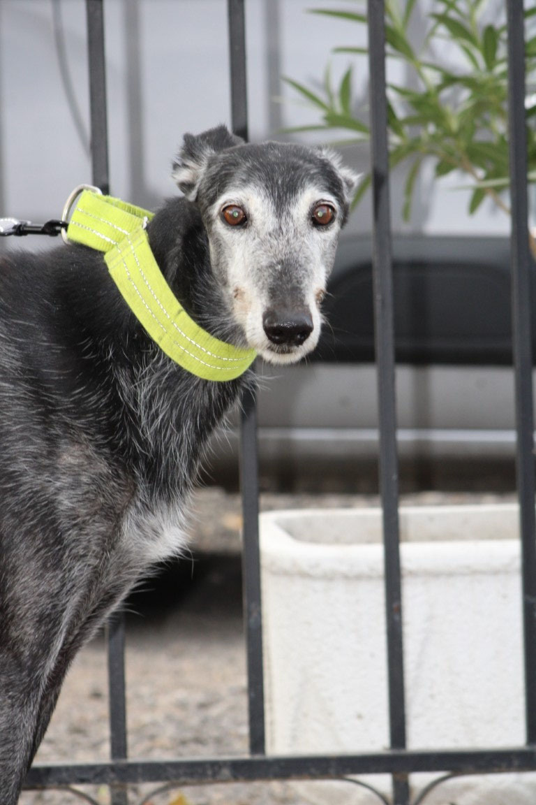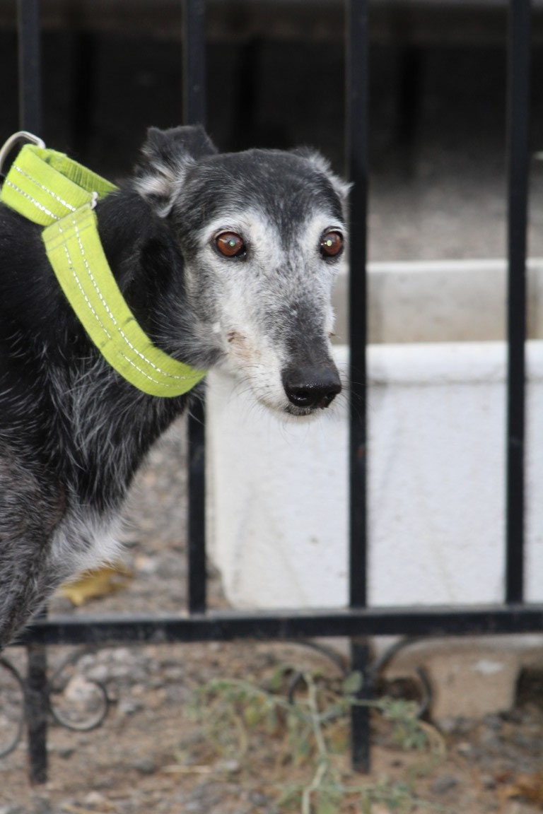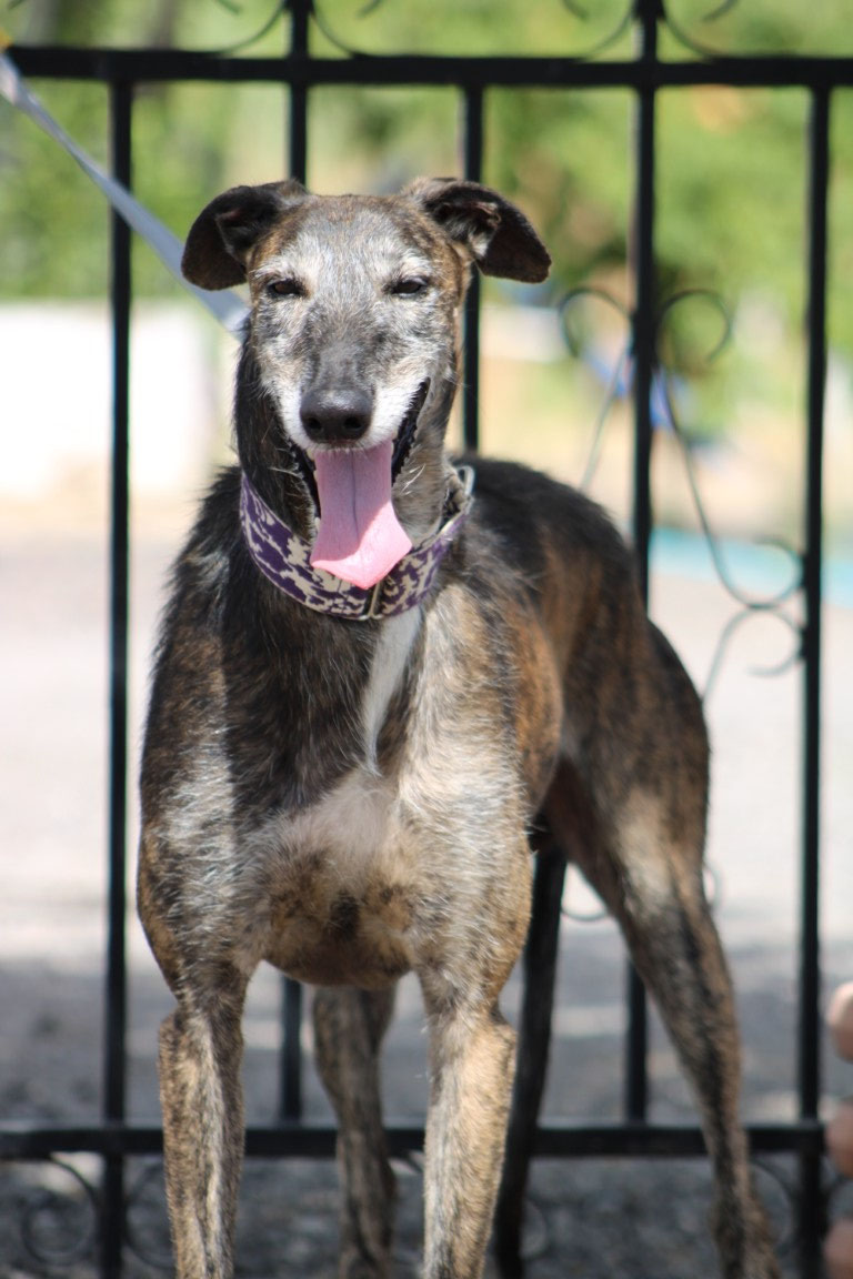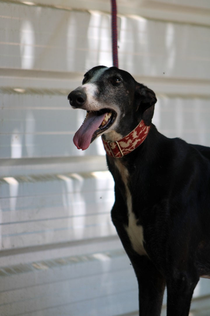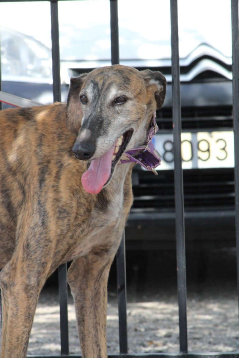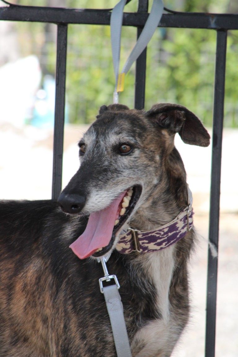 Son histoire : Currito a été cédé par la veuve d'un galguero avec un autre galgo, Romerito. A 8 ans, il n'a jamais connu aucune attention et a toujours dormi dans un chenil...
