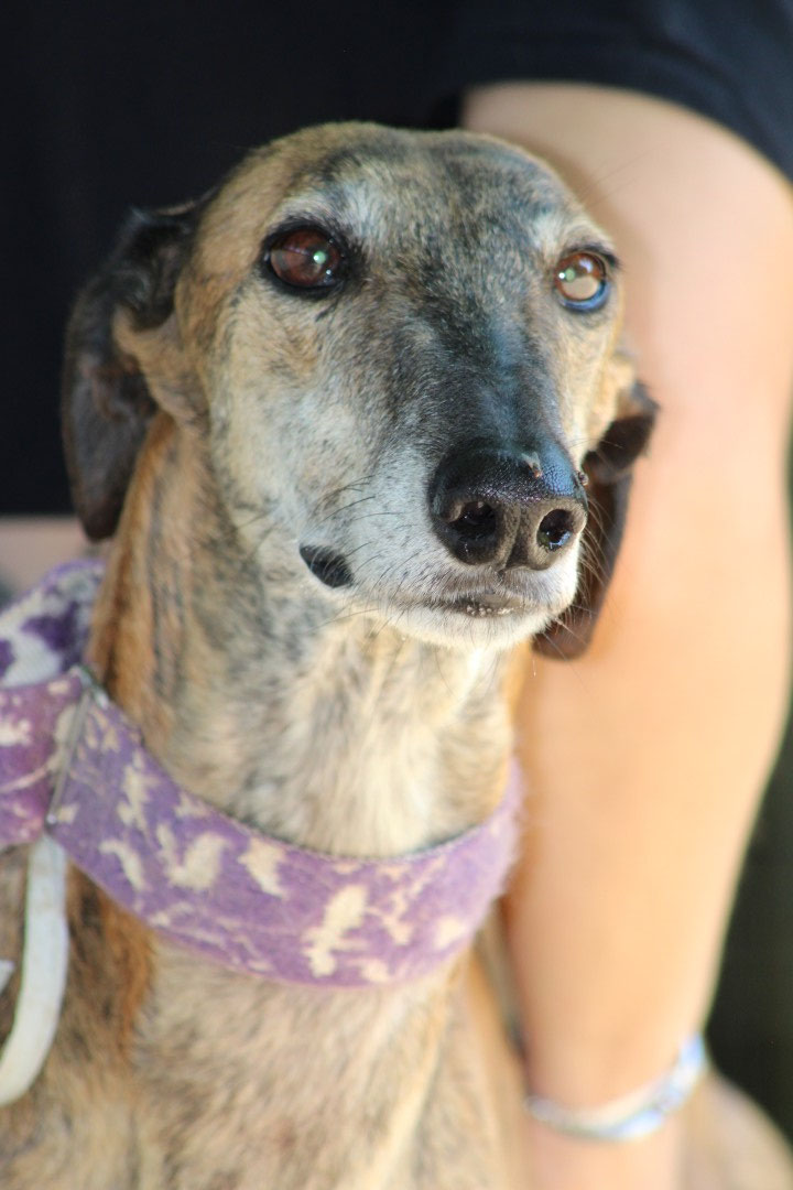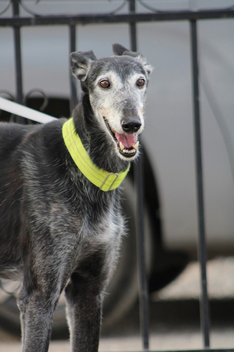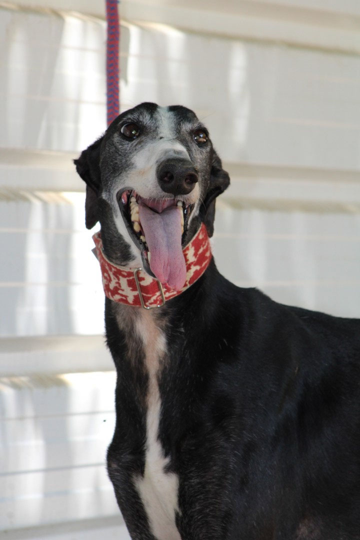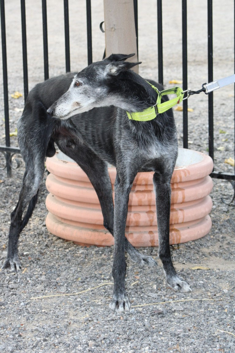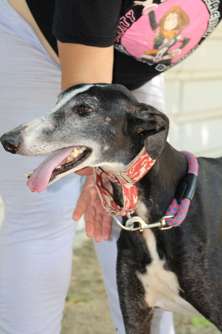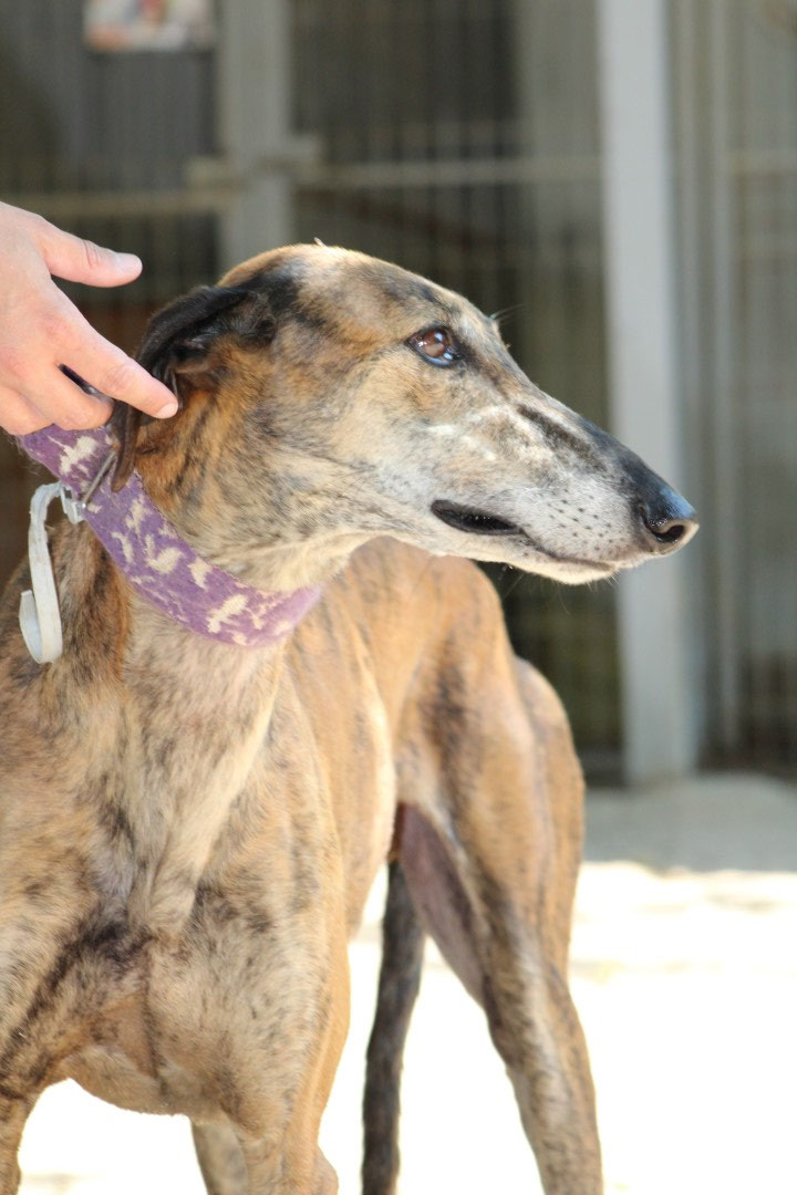 Son histoire : Currito a été cédé par la veuve d'un galguero avec un autre galgo, Romerito. A 8 ans, il n'a jamais connu aucune attention et a toujours dormi dans un chenil...