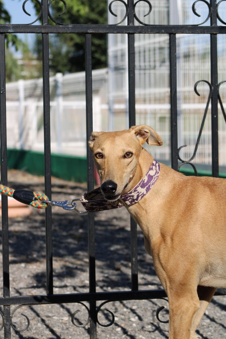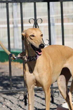Comportement et sociabilité : Dolce est un élégant galgo à la belle robe couleur champagne. Il a certes une entaille à l'oreille mais ça ne lui donne que plus de charme. Bien sûr, on n'a aucune idée que ce qu'on a pu lui faire mais Dolce n'en tient pas rancune : c'est un amour de chien, tant avec ses congénères qu'avec les humains (dont les enfants) ! Comme beaucoup de galgos, il est un peu timide aux premiers contacts mais révèle rapidement son véritable caractère : Dolce est un chien docile, obéissant et gentil. Il se comporte aussi bien en promenade qu'en voiture.