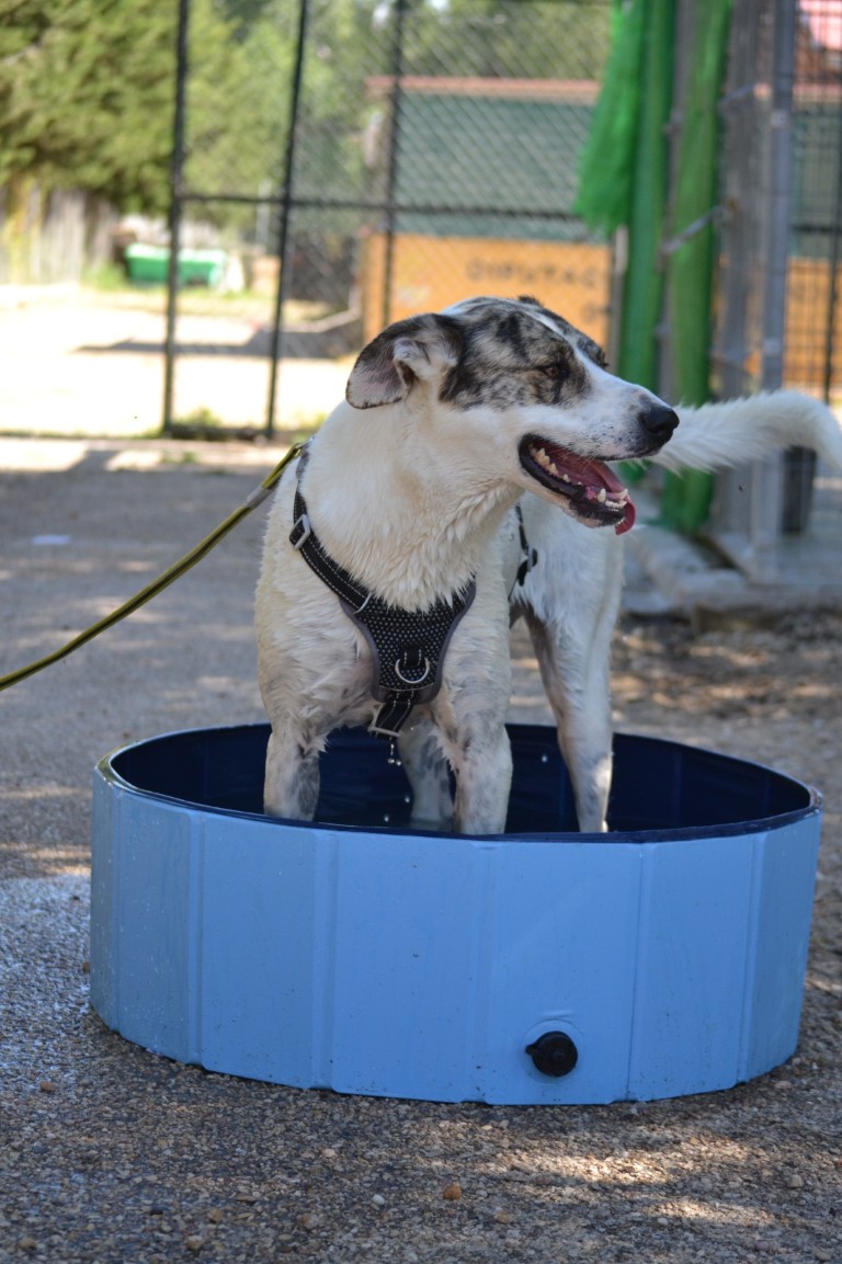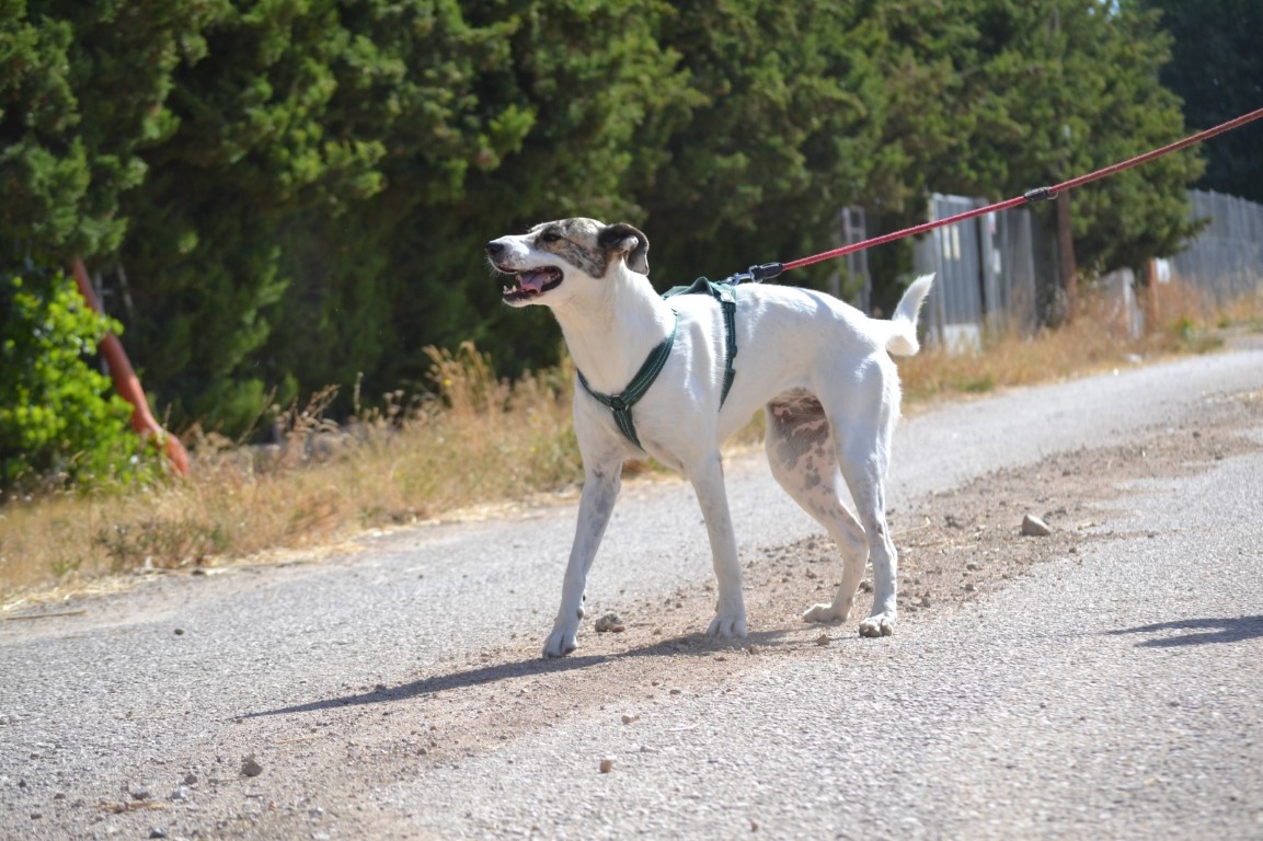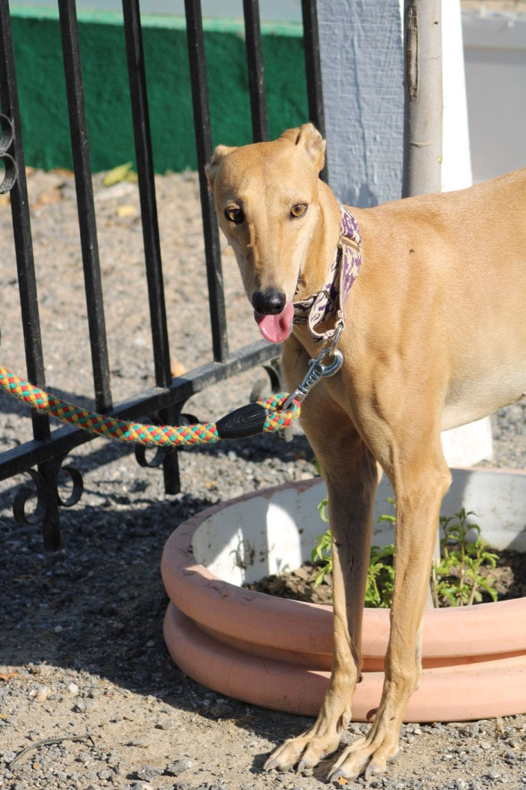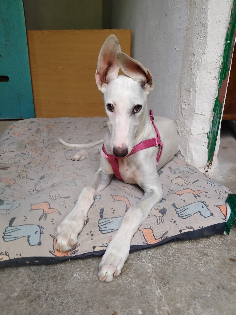 Comportement et sociabilité : Pili est une très jolie galga de petite taille. Elle ne s'adapte pas bien du tout à sa nouvelle vie. La pension où l'association garde ses chiens peut être très anxiogène pour certains et la pauvre Pili semble être comme en état de choc. Les bénévoles essaient de travailler avec elle pour qu'elle parvienne à surmonter ses peurs et accepte les gens mais une famille adaptée serait l'idéal pour l'aider à progresser plus rapidement. Elle est par contre très sociable avec les autres chiens avec lesquels elle adore faire la course ! Et apprécie également beaucoup les siestes au soleil. En voiture comme en balade en laisse, Pili se comporte bien (elle ne tire pas en laisse).