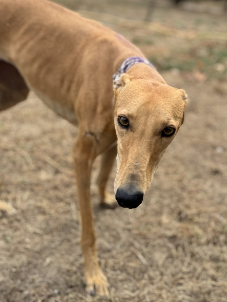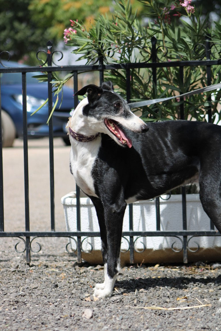 Dolce a derrière lui 9 ans de vie difficile, celle du lévrier espagnol exploité pour la chasse. Son adoption doit se faire au plus vite afin qu'il découvre enfin la douceur d'un foyer.