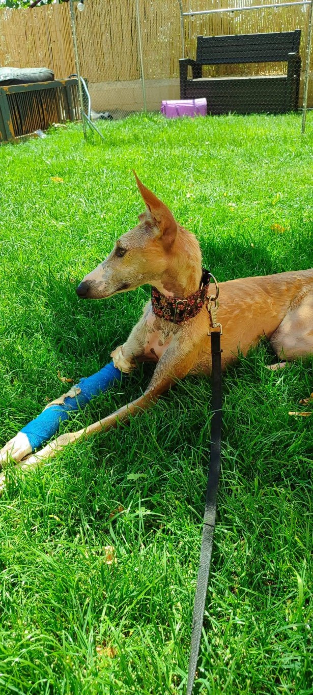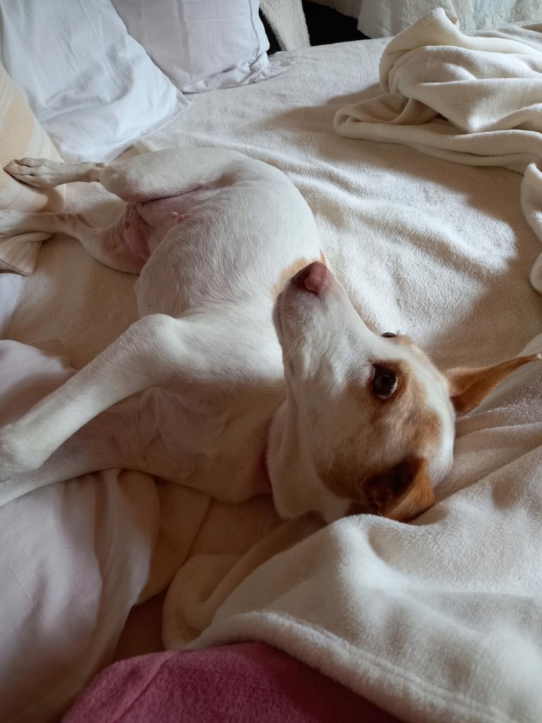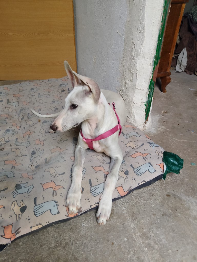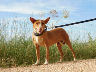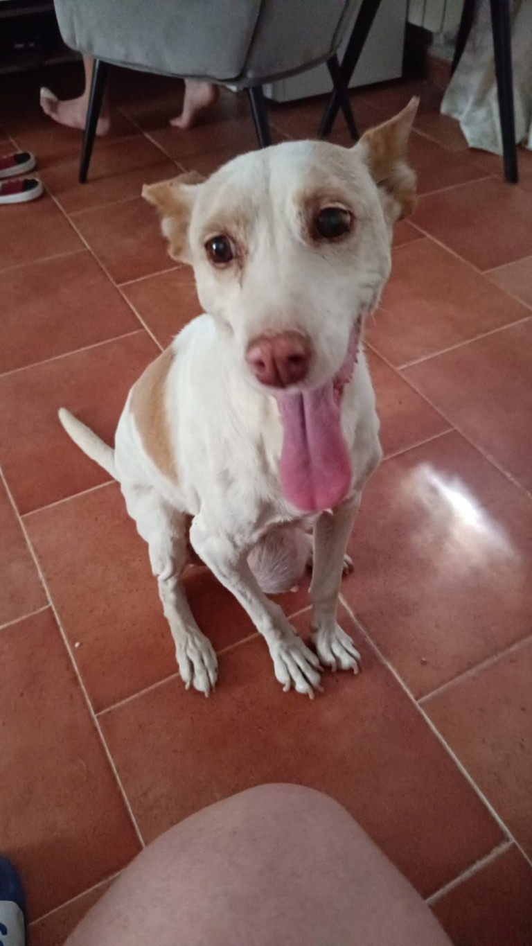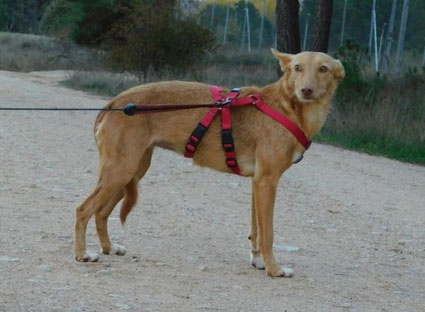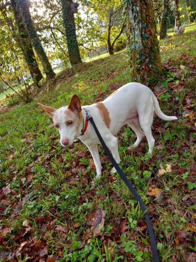 Comportement et sociabilité: Cloti est une petite podenca très douce, quand elle surmonte ses peurs elle devient alors très très affectueuse, si elle a confiance en la personne elle demande constamment de l’affection, elle a déjà marqué le cœur de tous les bénévoles de Cuencanima. Elle est arrivée totalement effrayée et avec un regard très triste. Nous ne connaissons pas son passé (mais nous pouvons facilement l'imaginer à cause de sa race et des circonstances dans lesquelles elle a été secourue), nous connaissons par contre son présent et son avenir, c'est un être très aimé à qui nous apportons toute l'attention et les soins que nous pouvons lui offrir. En ville et dans les zones plus calmes, elle a un peu peur, surtout à l'approche d'inconnus. Elle marche par contre sans problème avec sa personne de référence, bien que l’endroit où elle reste la plus à l'aise reste la campagne, endroit où elle est peu sollicitée par des inconnus, des voitures. Cloti est une vraie beauté, une chienne fidèle, douce et véritablement gentille, nous l'adorons.