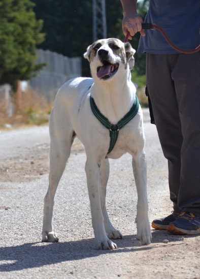 Comportement et sociabilité: Valera est arrivée il y a très peu de temps, le 4 juillet dernier. Nous avons déjà remarqué qu'elle est une chienne encore timide et déjà très affectueuse. Nous ne l'avons pas encore mise avec d'autres chiens mais nous sommes confiants. Valera est une chienne tranquille et en rien réactive. Elle est encore mince mais en forme.
