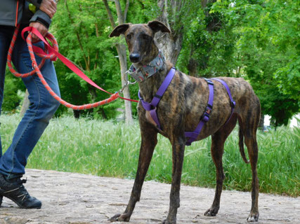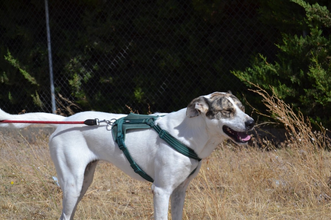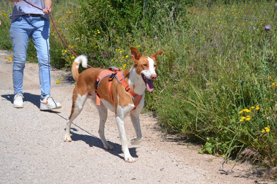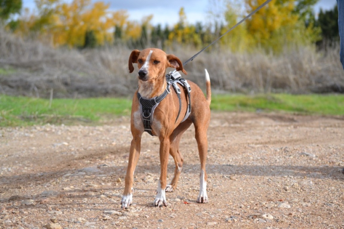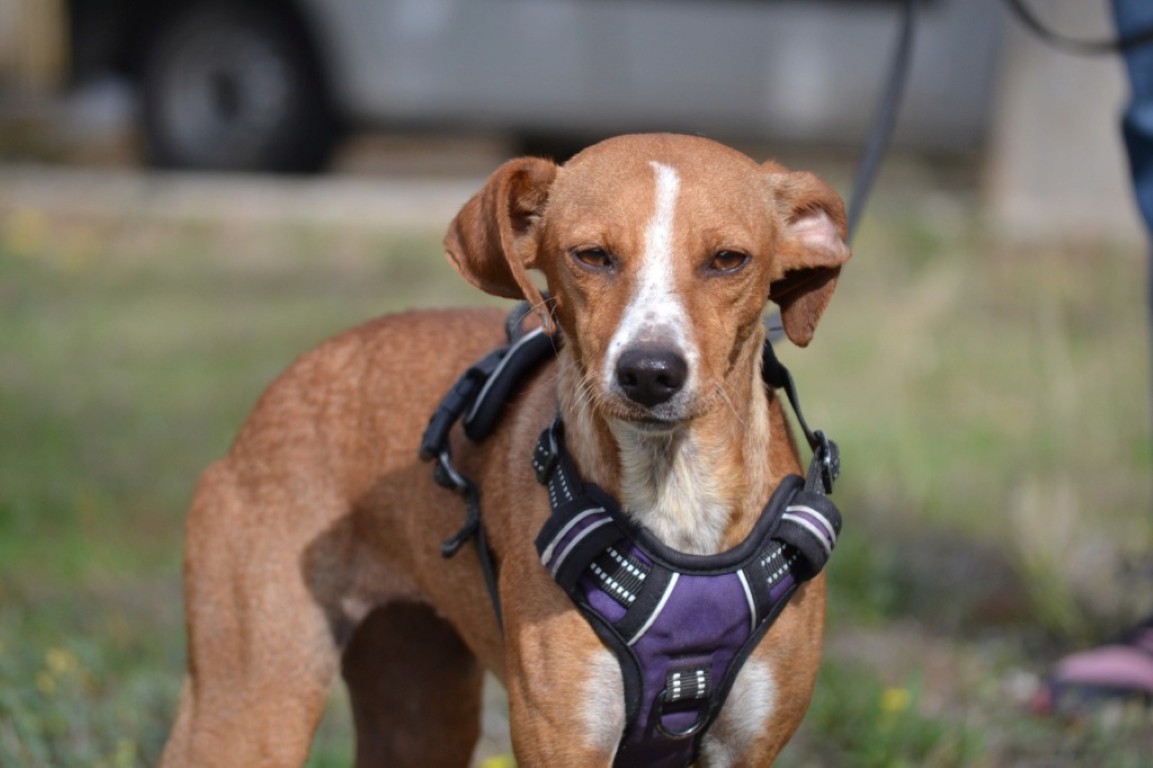 Comportement et sociabilité : Avellana est une jeune et charmante galga qui a tout pour faire le bonheur d'une famille, c’est un véritable trésor. Depuis son arrivée à notre refuge, elle s'est merveilleusement adaptée. Elle était un peu effrayée au début mais dès qu'elle s'est sentie en confiance, elle a fait ressortir son côté le plus drôle et le plus doux ! Dans ses moments de jeu, Avellana est un pur bonheur, même un peu brute, ce qui montre sa jeunesse et son envie de s'amuser, elle aime courir partout et profiter de la vie. En promenade, en laisse, elle est calme et attentive, surtout dans les environnements tranquilles comme en campagne (elle est plus prudente en ville, ce qui est compréhensible comme elle n’a pas eu l’habitude d’être sortie dans la rue).
