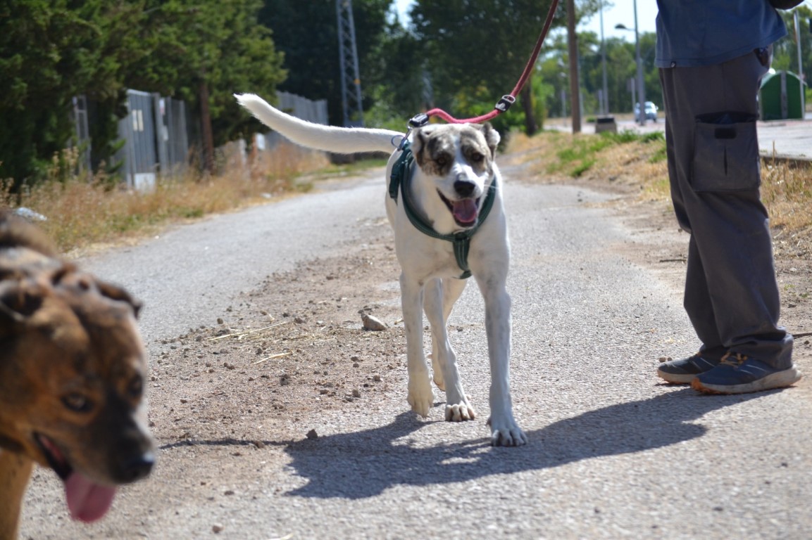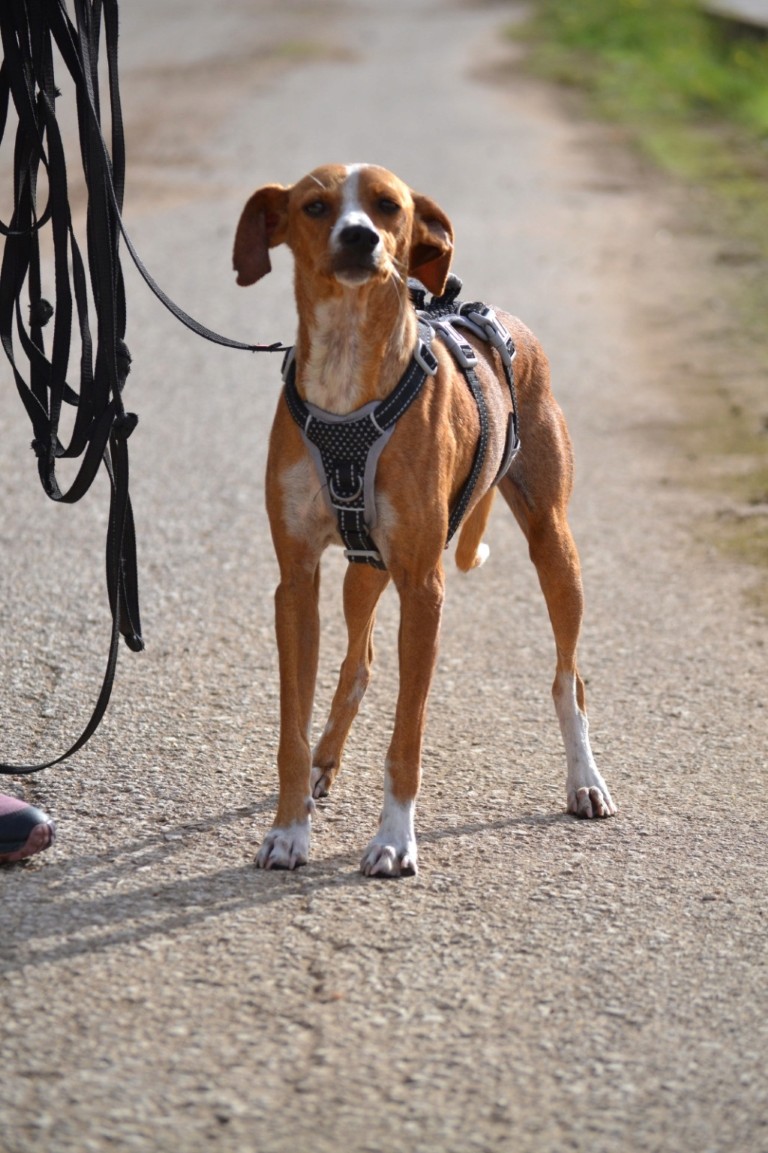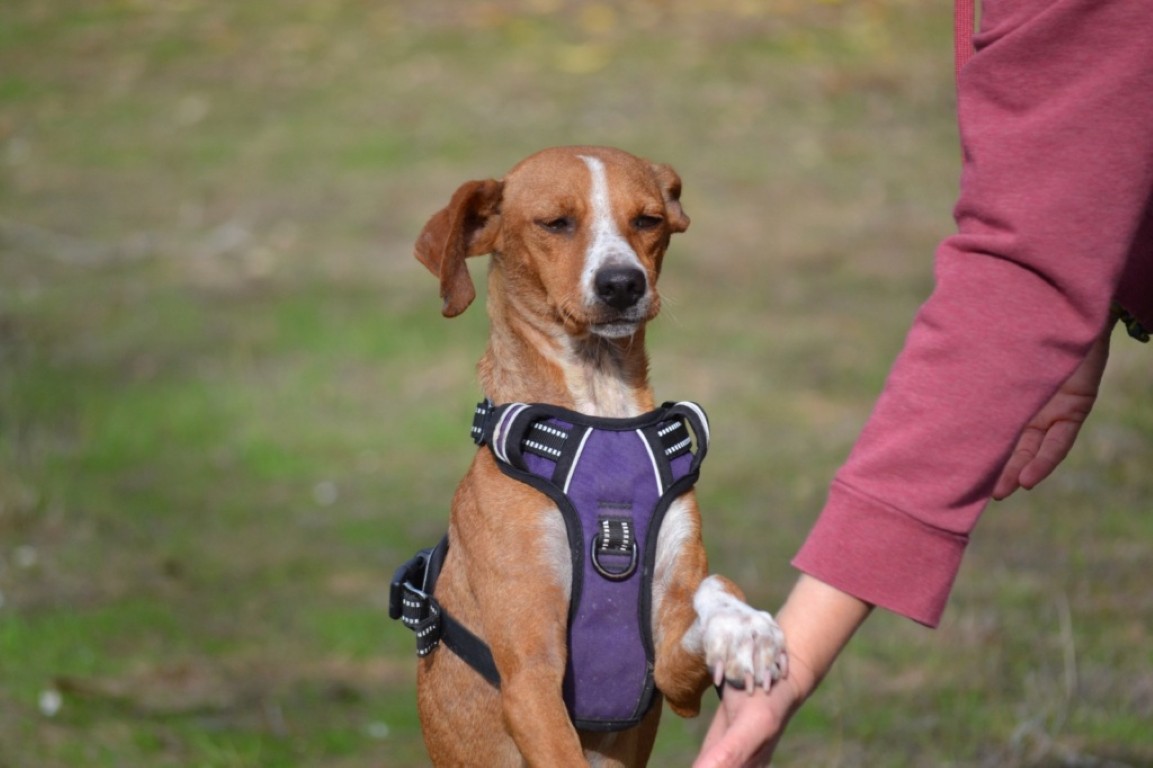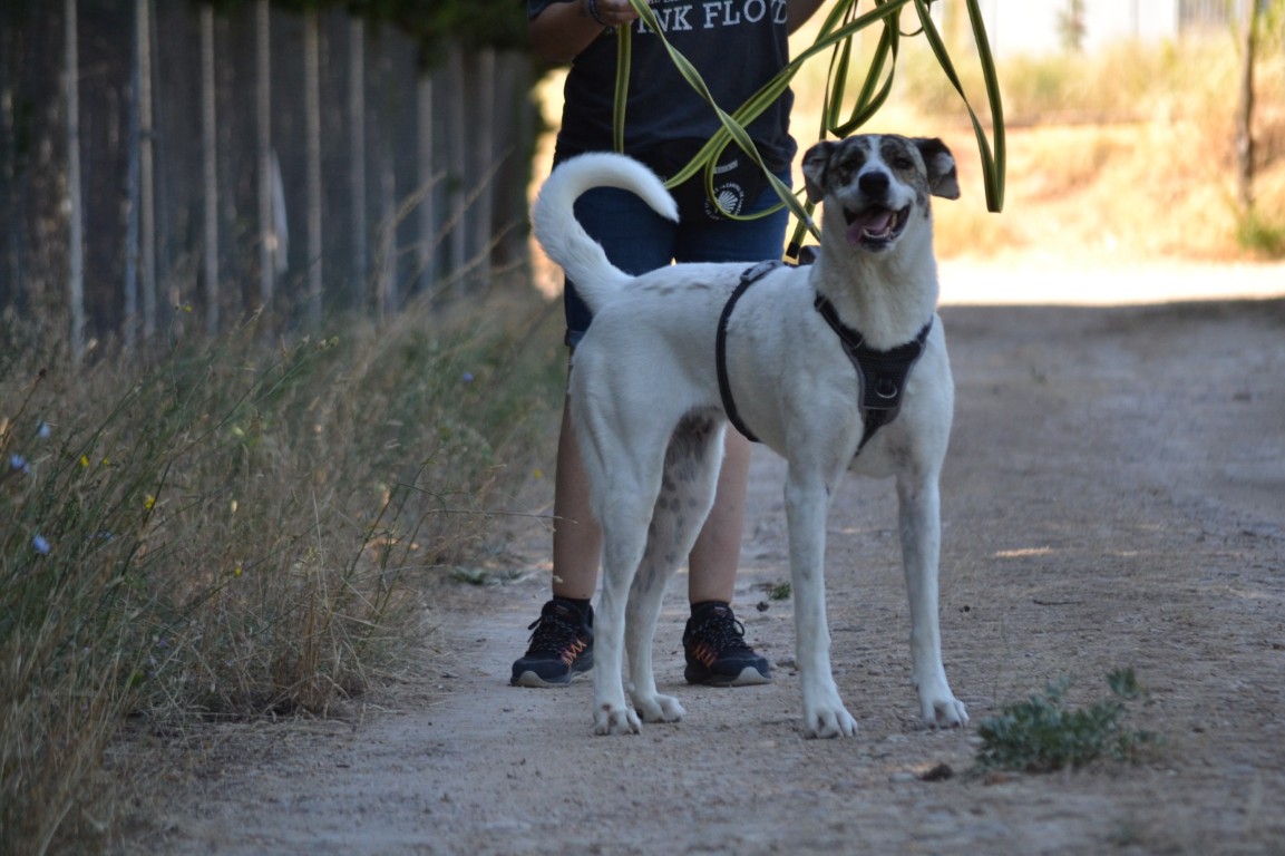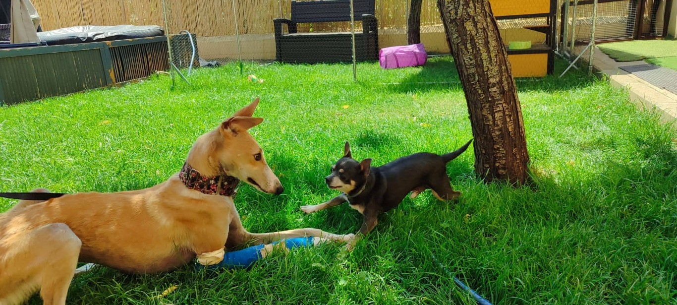 Comportement et sociabilité : Avellana est une jeune et charmante galga qui a tout pour faire le bonheur d'une famille, c’est un véritable trésor. Depuis son arrivée à notre refuge, elle s'est merveilleusement adaptée. Elle était un peu effrayée au début mais dès qu'elle s'est sentie en confiance, elle a fait ressortir son côté le plus drôle et le plus doux ! Dans ses moments de jeu, Avellana est un pur bonheur, même un peu brute, ce qui montre sa jeunesse et son envie de s'amuser, elle aime courir partout et profiter de la vie. En promenade, en laisse, elle est calme et attentive, surtout dans les environnements tranquilles comme en campagne (elle est plus prudente en ville, ce qui est compréhensible comme elle n’a pas eu l’habitude d’être sortie dans la rue).