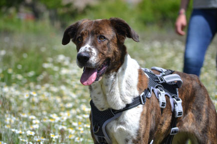 Comportement et sociabilité : Moncho sait se montrer calme mais peut aussi être joueur et actif ! Il s'entend très bien avec les femelles, avec les mâles, il peut être un peu plus dominant. Une bonne présentation entre eux est nécessaire pour une bonne entente. Avec les humains, Moncho est vraiment adorable. Il se laisse manipuler facilement, demande des caresses… C’est un super chien affectueux et très bon qui aime les promenades (durant lesquelles il se comporte d'ailleurs très bien).