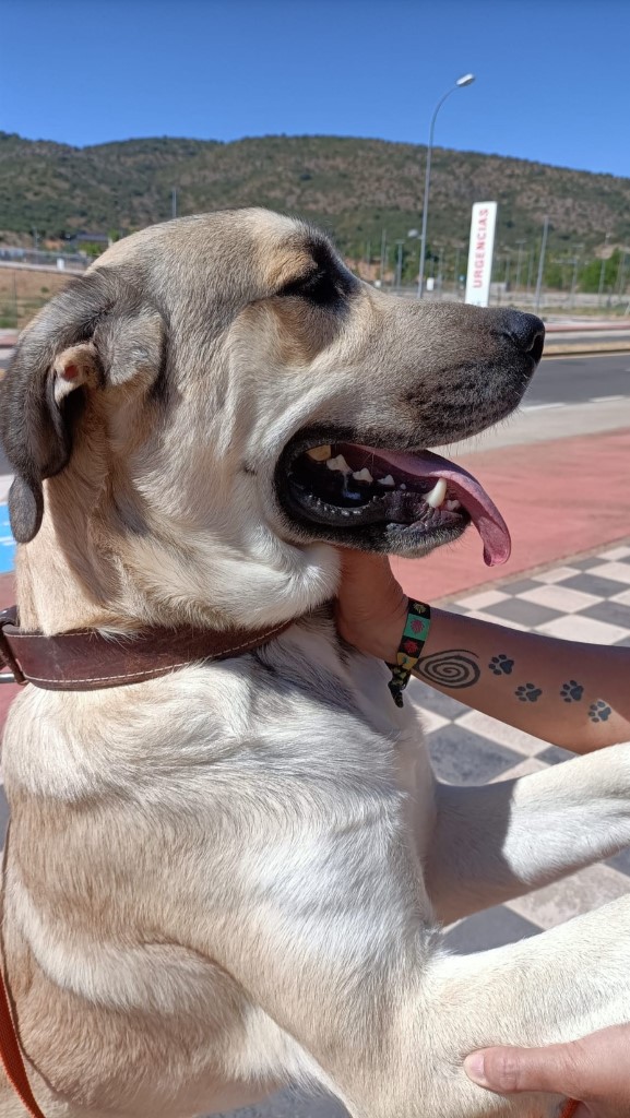 Son histoire : son histoire est celle d’une survie proche de la limite : il a été secouru après avoir été abandonné dans une situation d'extrême vulnérabilité, sur une aire de service d'une autoroute à fort trafic, à 100 kms de Cuenca. Son sauvetage n'a pas été aisé mais il a finalement pu être mis en sécurité.