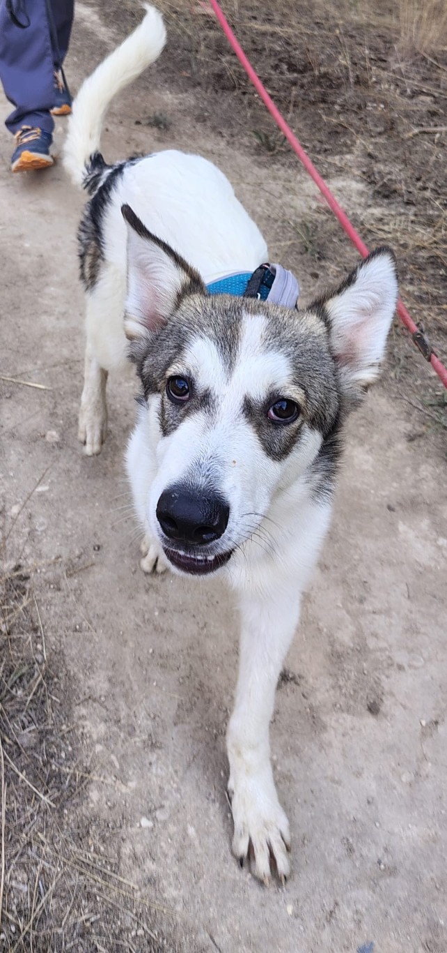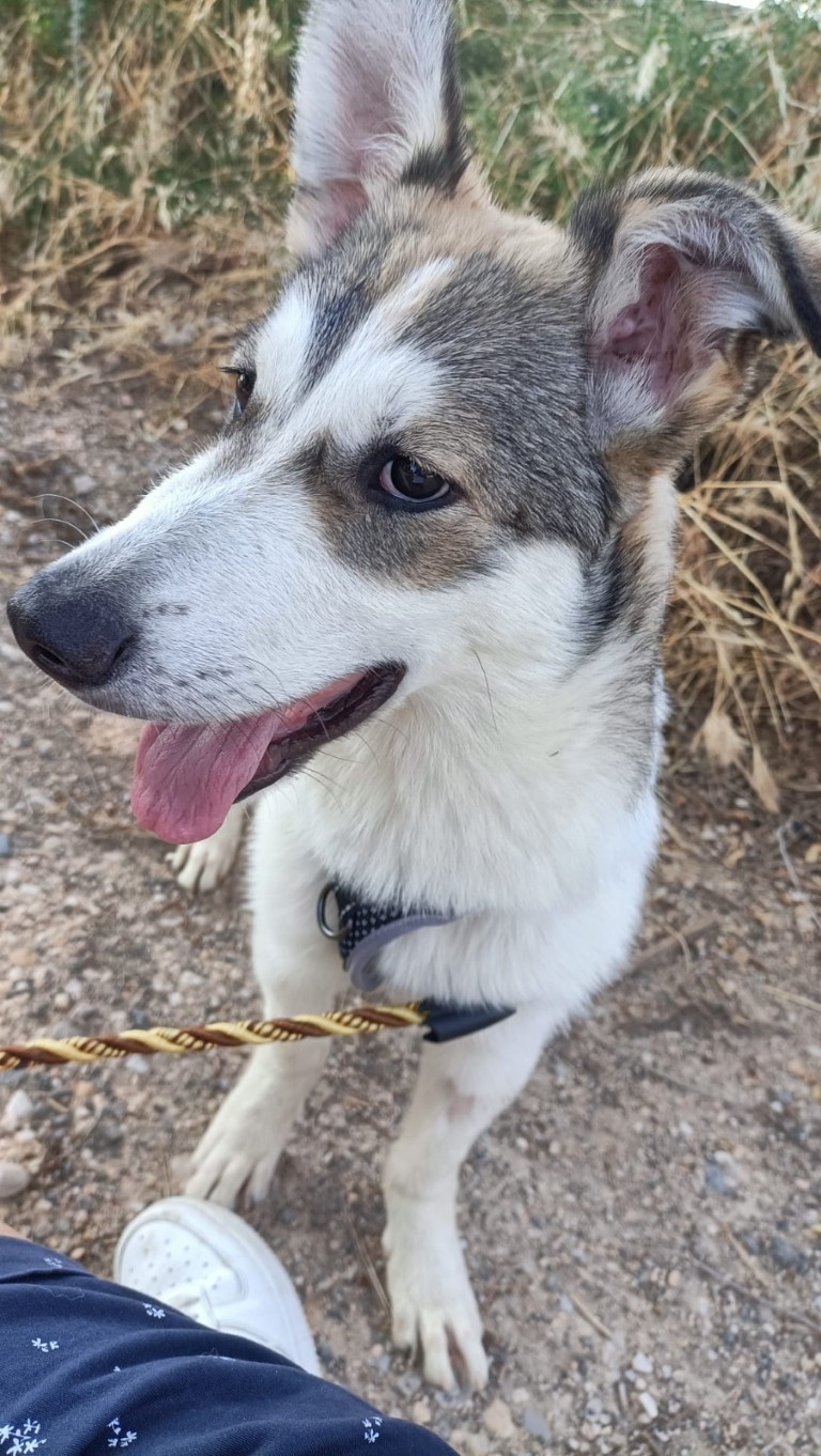 Comportement et sociabilité: Ayron est un jeune galgo d'une beauté singulière, dont le pelage unique ne passe pas inaperçu. Il est arrivé au refuge Cuencanimal à l'âge d'un an seulement, apportant avec lui une histoire de survie et la nécessité d'un environnement patient et favorable. Ayron a besoin d'une approche basée uniquement sur le renforcement positif. Il est essentiel de ne pas le forcer, la patience et le fait de lui permettre d'être celui qui décide de se rapprocher, sont essentiels. S'il est mis sous pression ou si on le tire par la laisse, il a tendance à bloquer ou à se débattre. Malgré ses craintes initiales, il a connu une nette amélioration grâce à un travail patient et progressif, il profite désormais de promenades avec une personne de confiance avec qui il a tissé un lien fort. Dans l'environnement sécuritaire du refuge et soutenu par sa meute, Ayron est plus confiant et approche même les personnes qui entrent dans sa cour. Cependant, son côté méfiant refait rapidement surface si quelque chose lui fait peur ou s'il doit faire quelque chose qu'il n'aime pas, ce qui l'amène à s'éloigner. Il est important de savoir qu'il n'aime pas, pour l'instant, être tenu dans les bras et qu'il peut avoir tendance à mordiller (par défense) dans cette situation. Il adore les jouets, bien que sa préférence soit de désorganiser les couvertures dans son box. Ayron est affectueux avec les personnes qui entrent dans son patio, où il se sent en sécurité, mais il peut être méfiant (il se sent mieux quand il est accompagné par les autres chiens de sa cour). Il s'entend bien avec ses congénères, bien qu'il puisse être quelque peu brutal lors des jeux et des courses poursuites. Il cohabite sans problème avec un autre galgo mâle et partage la nourriture sans conflit.