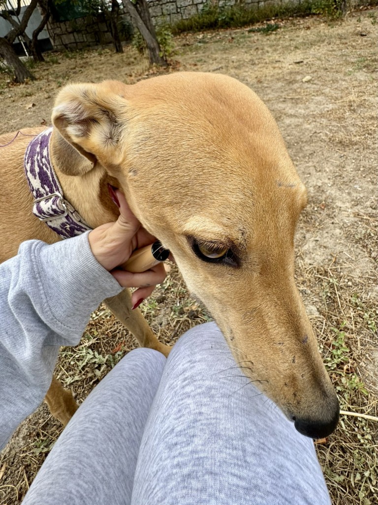 Nous croyons fermement que les galgos sont des êtres magnifiques qui méritent tout l'amour et la chaleur d'un foyer. Avellana en est la preuve vivante : c’est un chien doux et spécial qui, nous en sommes sûrs, volera bientôt le cœur de quelqu'un !
