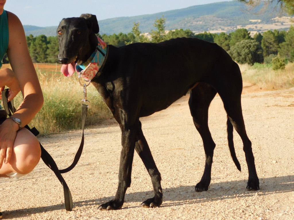 Comportement et sociabilité : Nuna est une galga extravertie, curieuse et vive. C’est un petit tremblement de terre adorable, elle n'a peur de rien et même dans le cabinet du vétérinaire elle inspectait chaque recoin ! C'est une petite galga, avec un pelage noir très doux, des yeux bruns très expressifs : un amour souhaitant trouver une famille qui la fasse se sentir comme la petite princesse qu'elle est. Dans le box elle ne sort pas ses couvertures de leur place, elle se comporte très bien en voiture et voyage sans faire de bruit dans sa caisse de transport. Elle marche bien en laisse mais elle se laisse parfois emporter par les odeurs qui l'envahissent.