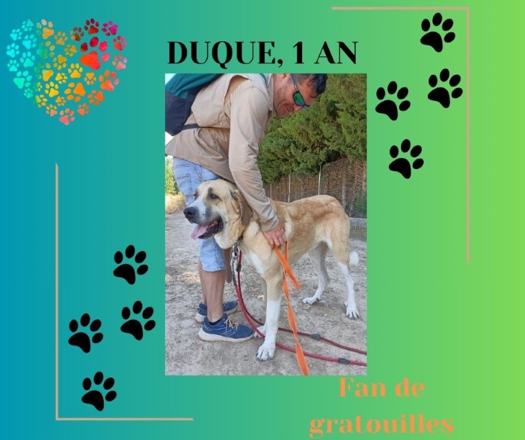 Moncho est né en décembre 2023, pèse 30 kg, est stérilisé et négatif leishmaniose.
