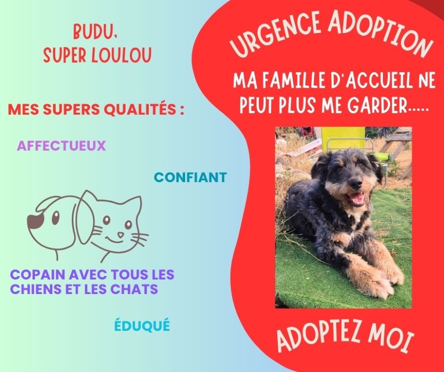 Son histoire : Bruno a été récupéré errant dans un village, dans la chaleur et sans soins. Il prend du poids et un beau poil et espère laisser loin derrière lui son passé de privations. C'est le moment pour lui de pouvoir grandir choyé comme il le mérite