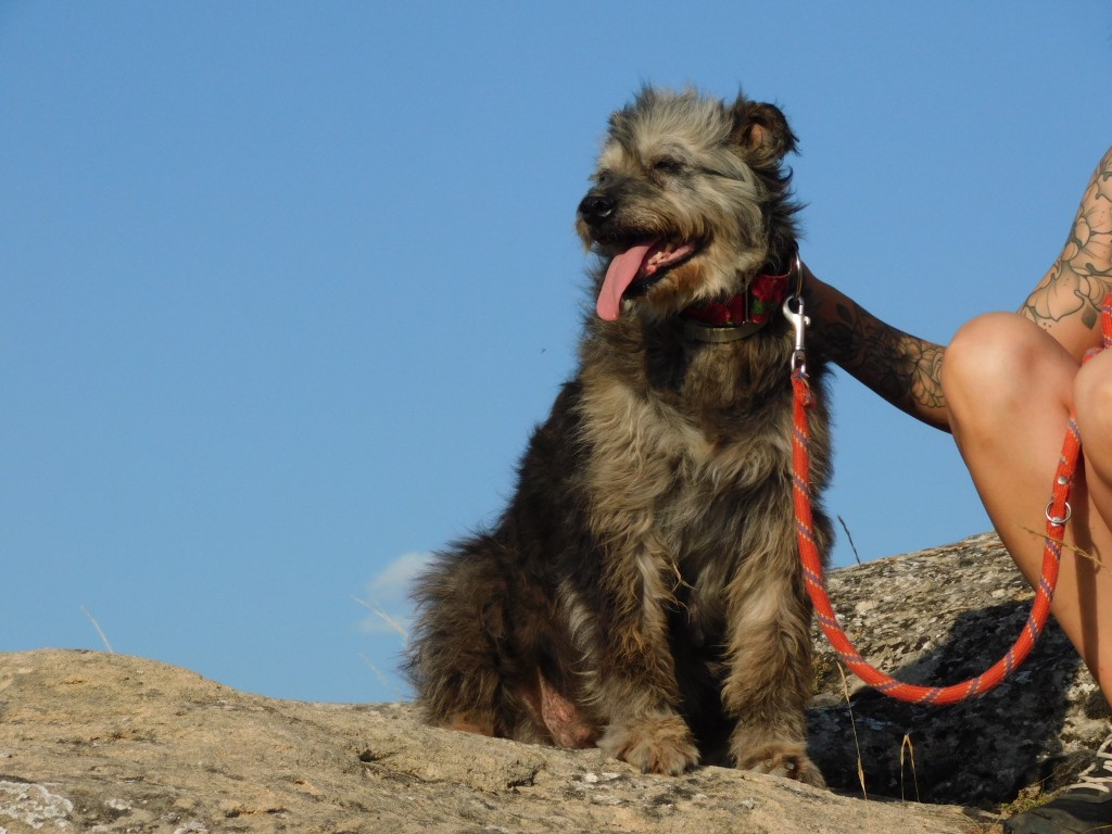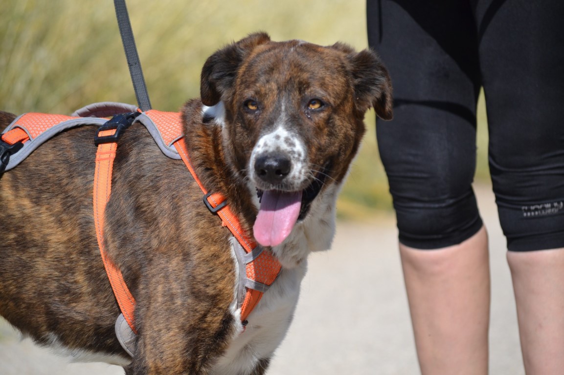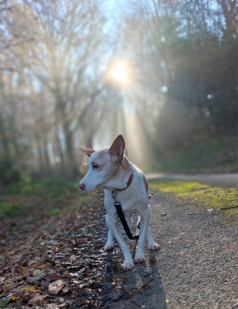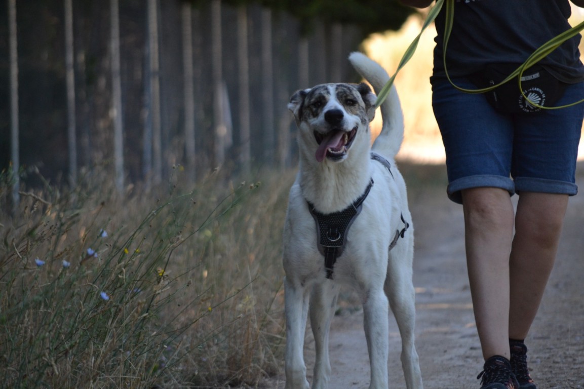 Fan des grandes balades, elle renifle, elle court mais garde toujours un œil attentif sur son humain, elle est obéissante et avec un rappel impeccable. Propre, sage, pas destructrice, pas voleuse (oui, oui, vous avez bien lu !), elle est top ! Elle est très douce et câline avec les humains, petits et grands et en plus, elle est sage en voiture.