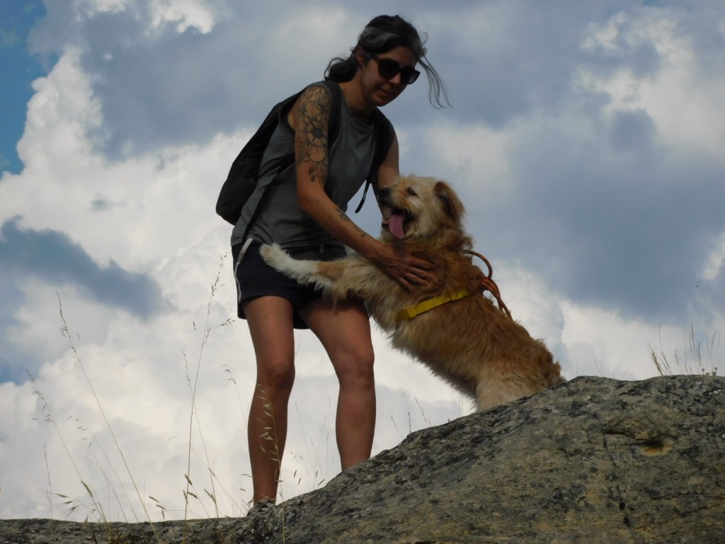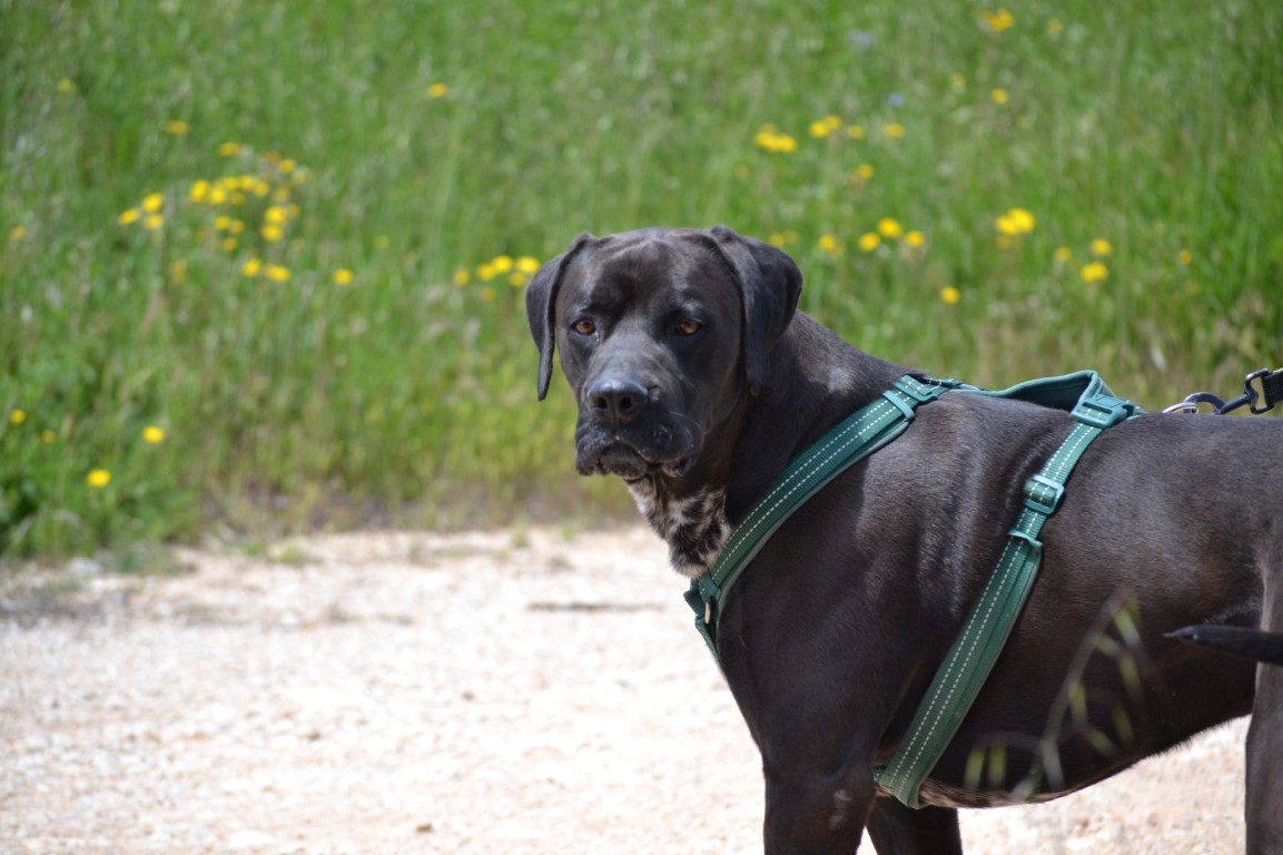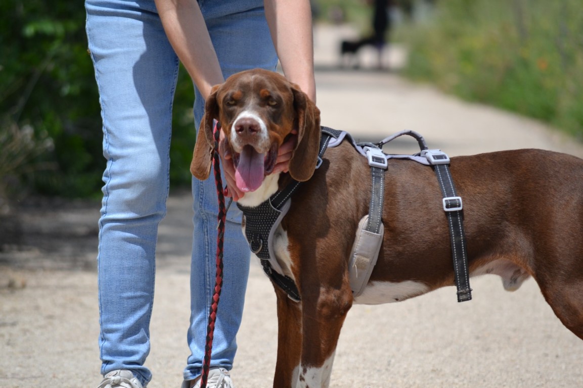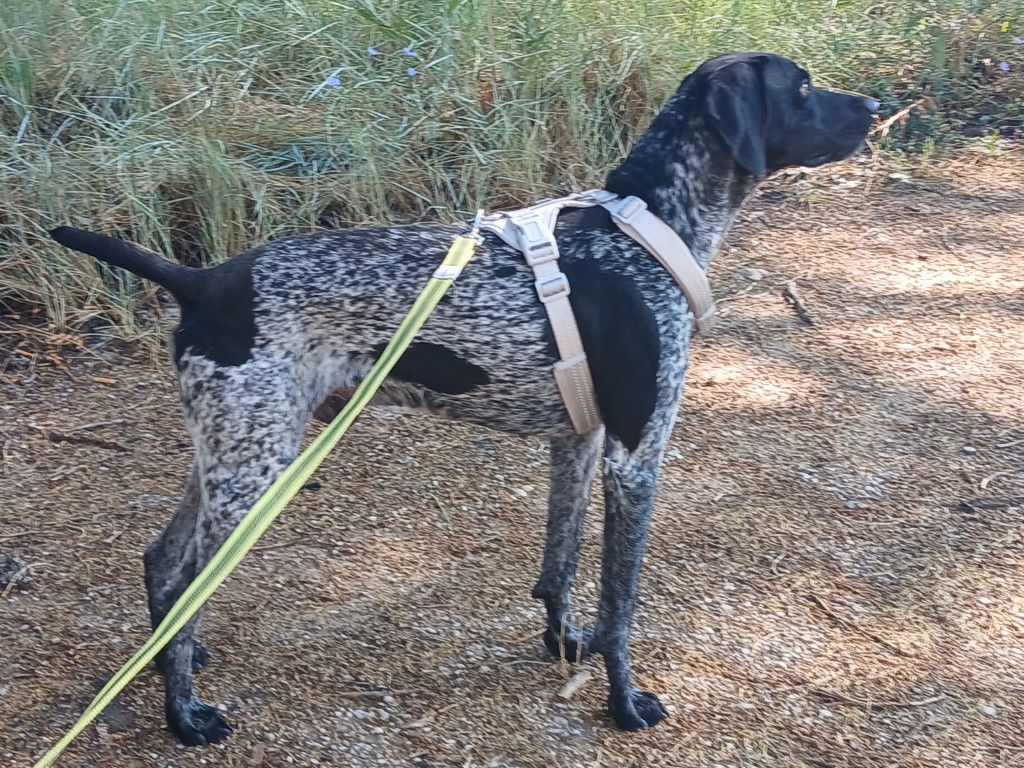 Fan des grandes balades, elle renifle, elle court mais garde toujours un œil attentif sur son humain, elle est obéissante et avec un rappel impeccable. Propre, sage, pas destructrice, pas voleuse (oui, oui, vous avez bien lu !), elle est top ! Elle est très douce et câline avec les humains, petits et grands et en plus, elle est sage en voiture.