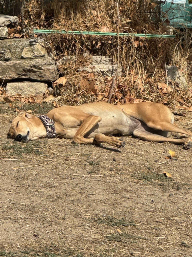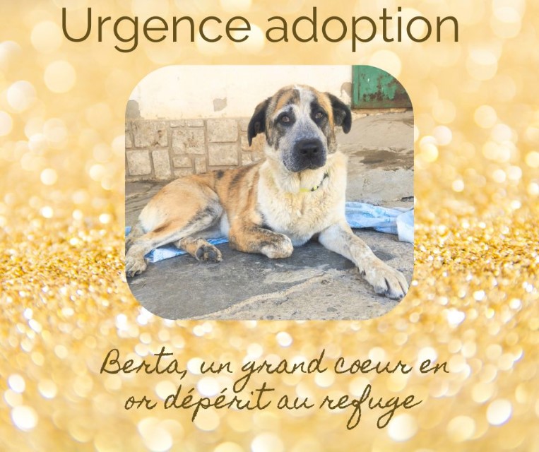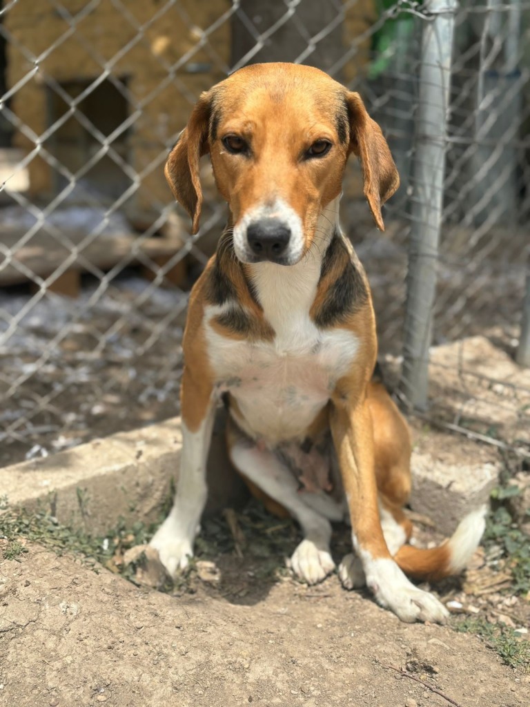 Irène est née le 9 juin 2022, pèse 29 kg, est stérilisée et négative leishmaniose.