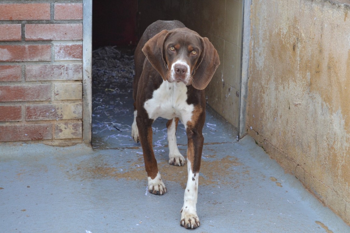Son histoire : Sauce est arrivé il y a très peu de temps à la fourrière, dans un état assez bon. Nous pensons qu'il a été abandonné parce que c'est la fin de saison de la chasse et que ses maîtres se sont lassés de lui alors que c'est un véritable bonheur de côtoyer Sauce.