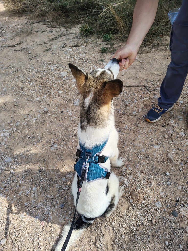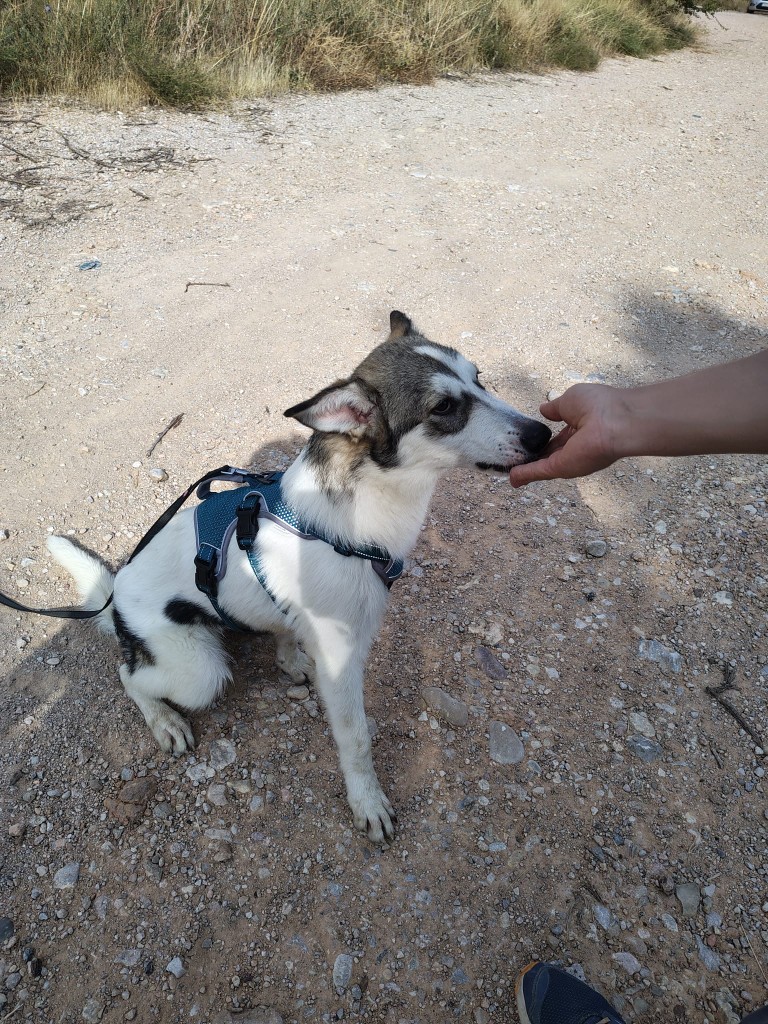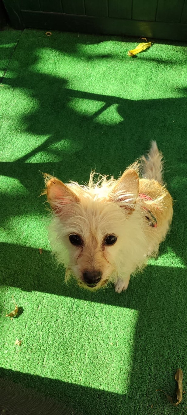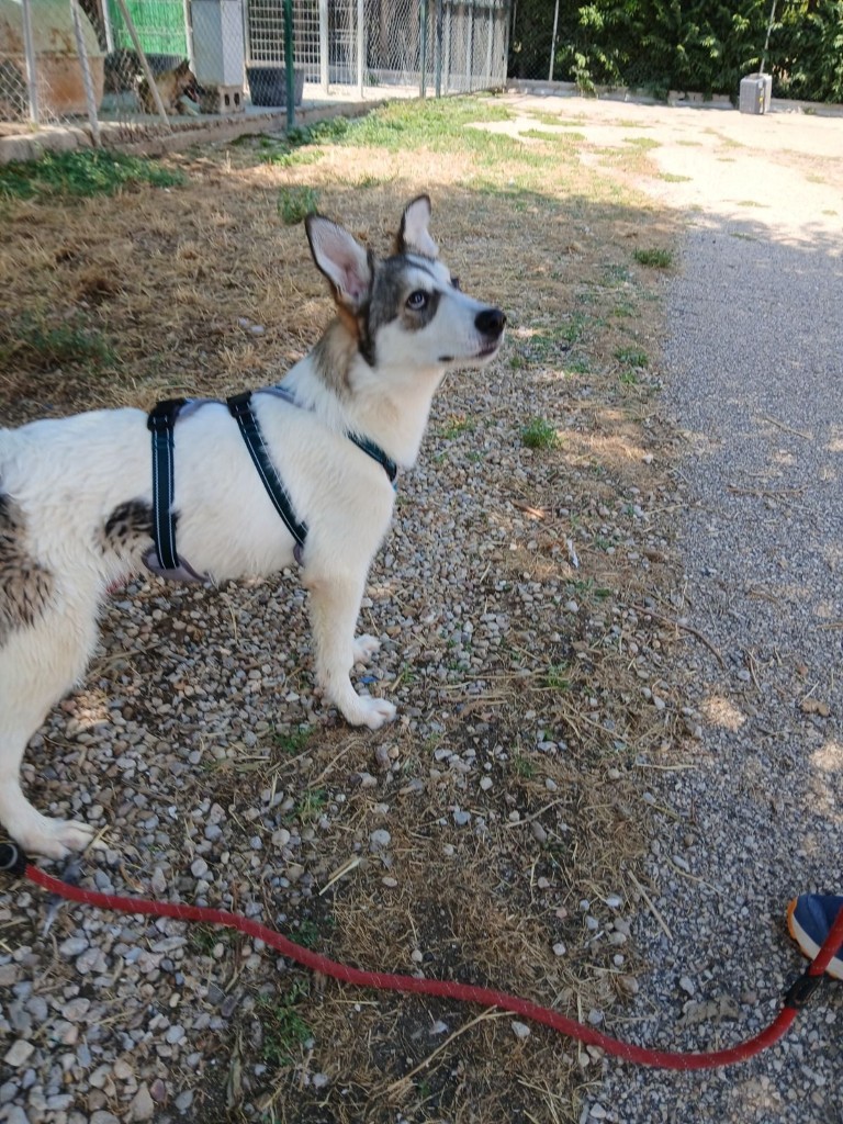 Comportement et sociabilité : notre Chia est toute petite, à peine 5 kilos, mais avec un cœur immense. C'est une chienne douce et affectueuse, très attachée aux humains. Elle ne demande qu'à être accompagnée, à recevoir des câlins et à partager ses journées avec vous. Elle adore les promenades : elle marche calmement, sans tirer sur la laisse, curieuse et appréciant chaque pas. Elle voyage bien en voiture, au début, elle peut gémir un peu, mais elle se détend rapidement et reste calme dans sa cage de transport. Elle vit mal au refuge, nous pensons qu'il y a trop de stimulations, des températures extrêmes et aussi de longues heures de solitude. Nous faisons de notre mieux pour prendre soin d'elle mais il y a tellement de chiens avec des besoins si différents que nous ne pouvons pas tout faire. Elle a besoin d'un foyer de toute urgence ! Elle peut parfois se montrer un peu jalouse envers les autres chiens au premier abord, ce qui s'explique par le fait qu'elle aime simplement être au centre de l’attention. De ce fait, dans son foyer idéal, soit elle serait le seul chien, soit les adoptants seraient patients et sauraient lui laisser de l’espace pour ensuite la présenter correctement aux autres chiens, en comprenant qu’ils s’adapteront progressivement les uns aux autres. Elle a fait preuve de respect et de curiosité envers les chats, avec une acclimatation adéquate, elle pourrait donc vivre avec eux.