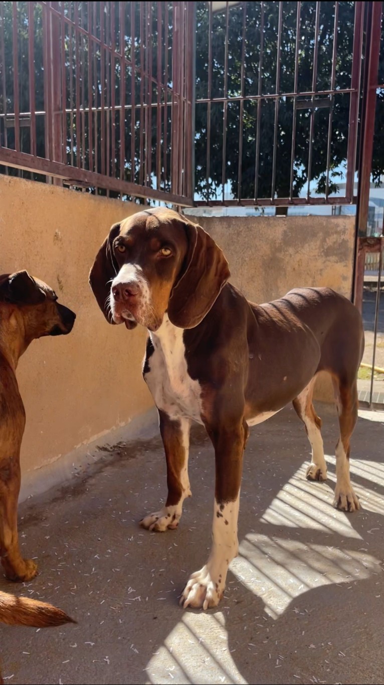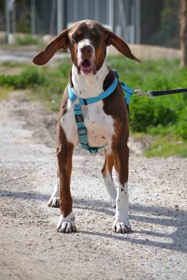 Son histoire : Brezo a été abandonné, comme beaucoup d’autres chiens de chasse, à la fin de la saison. Quand nous l’avons récupéré, Brezo était très maigre et peureux. Il s’est bien adapté au refuge et a toujours été mis en compagnie d’un autre chien. Peu de temps après son arrivée, en juillet, nous avons dû opérer Brezo d’une hernie au colon. Il se porte à merveille comme si cela n’avait jamais eu lieu.