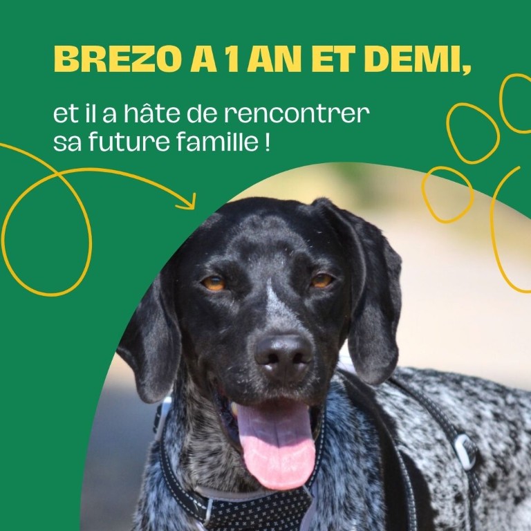 Comportement et sociabilité : Brezo est arrivé en mai 2025. Il est très sociable et affectueux, il s’entend bien avec tous les autres chiens, mâles comme femelles. Un test chat a été effectué avec succès, un chien parfait ! Et pourtant, Brezo passe inaperçu car il n’aboie pas, il s’adapte bien à toutes les situations. En balade, Brezo se comporte égement bien.