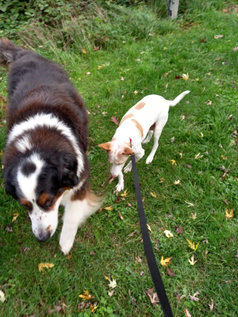 En promenade, Armani se comporte très bien , il est tranquille, en ville, tout en restant proche de son humain.