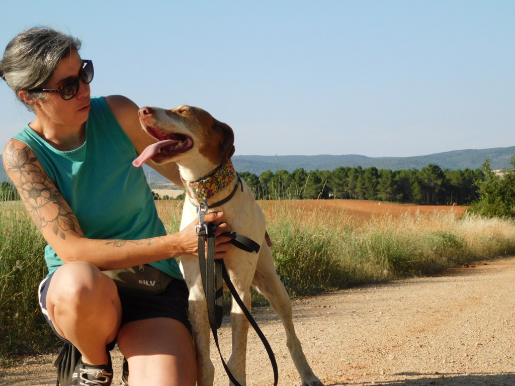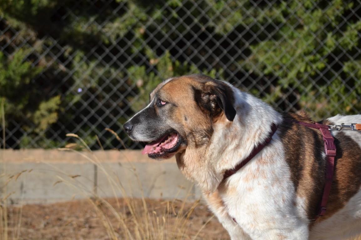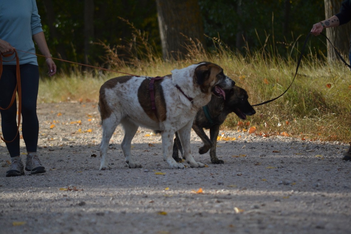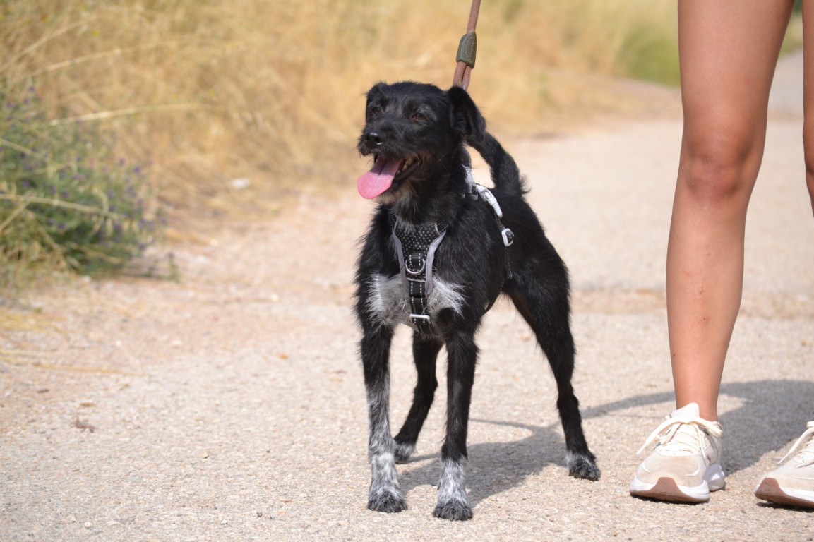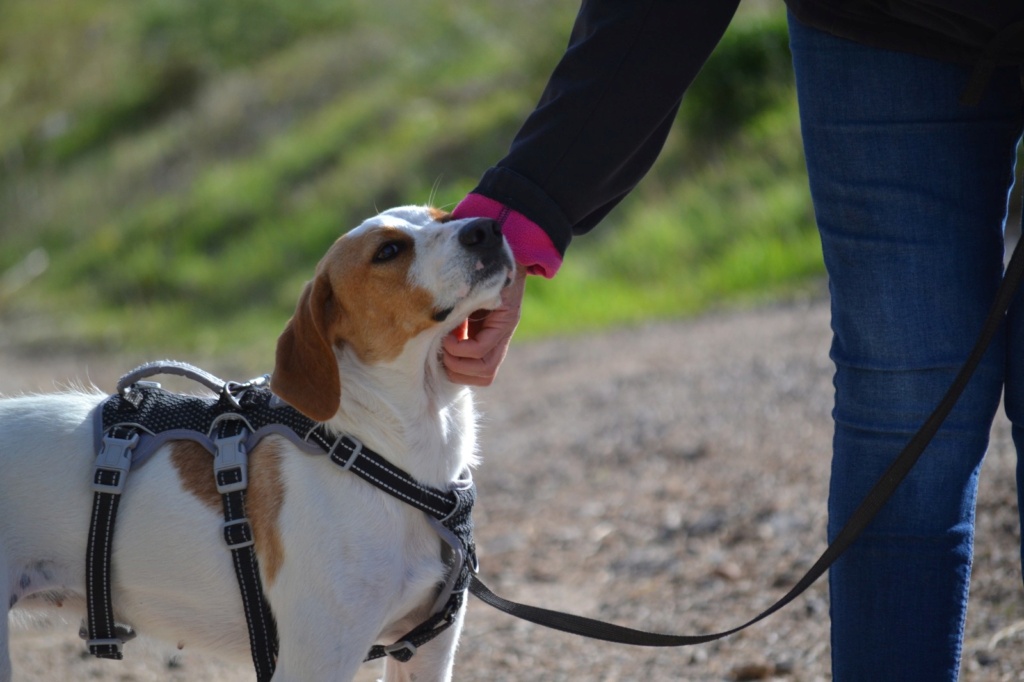Ce manque de stimulation l'affecte : elle est plus nerveuse que d'habitude, gémissant pour attirer l'attention et avoir de la compagnie, et sa sensibilité est exacerbée par cet espace confiné. Il est clair que son âme tourmentée aspire à une autre vie, une vie plus riche. Mais le plus beau, c'est que lorsqu'elle quitte le refuge, lorsqu'elle respire l'air frais et qu'elle se sent libérée de cette routine angoissante. Tálon, alors, se métamorphose. Elle se détend, se stabilise, son regard s'adoucit. Dans les quartiers calmes de la ville, elle marche bien, même si elle est sensible aux bruits. Elle ne panique pas et n'essaie pas de s'enfuir, elle a simplement besoin de s'habituer à son nouvel environnement. Et elle s'y habituera, il lui faut juste un peu de temps, du calme et de l'affection. Elle voyage bien en voiture, elle y monte d'elle-même et voyage tranquillement dans sa cage de transport. Elle se laisse aussi bien soigner par le vétérinaire, elle est un peu agitée, certes, mais si on lui parle doucement et qu'on la caresse, elle se concentre sur nos mains et se laisse faire sans problème. C'est à la campagne qu'elle révèle toute sa véritable nature : là, son nez ne cesse de renifler, d'explorer, de découvrir chaque recoin comme si le monde était un livre ouvert rempli d'histoires à lire et surtout sentir. Elle a l'air heureuse, sereine, en harmonie avec elle-même. C'est un vrai bonheur de la voir ainsi s'épanouir.