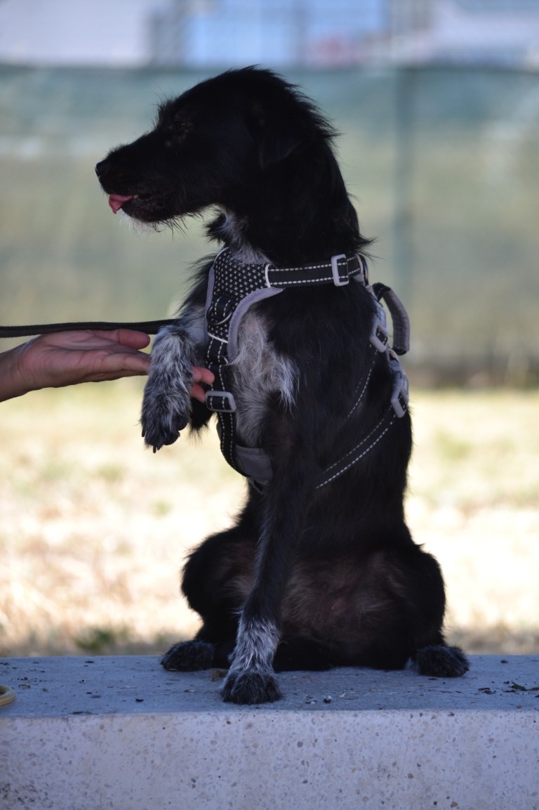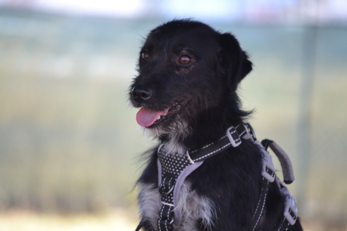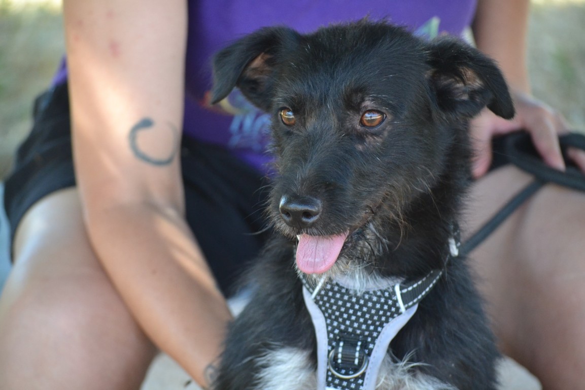 Son histoire : nous sommes allés récupérer Laïka dans un village dans lequel elle errait depuis longtemps, elle est arrivée très apeurée et nous avons mis beaucoup de temps pour gagner sa confiance. Elle a possiblement subi des mauvais traitements et en tout cas n’avait jamais reçu le moindre geste d’affection. Nous avons attendu que Laïka soit prête pour la proposer à l’adoption, c’est une perle.