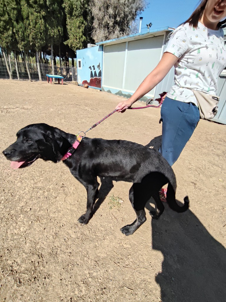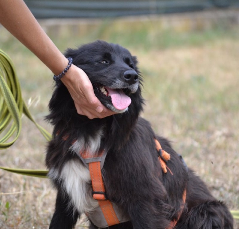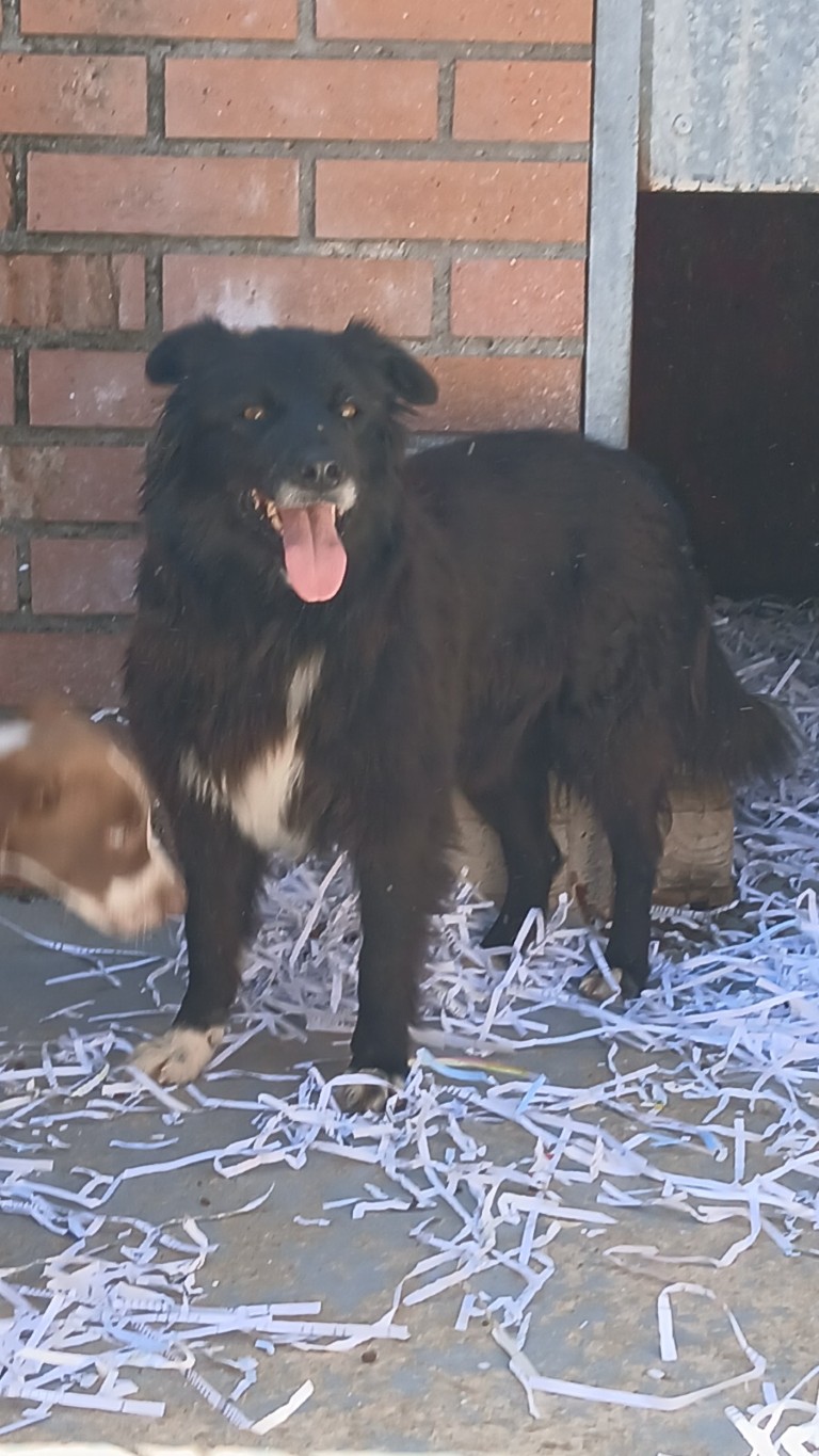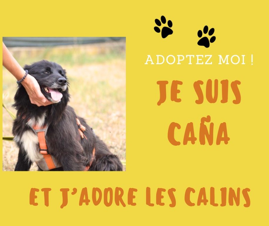 Comportement et sociabilité : Caña est arrivée il y a peu de temps avec nous, en juillet 2025. Caña est une croisée Border Collie à adopter, très douce. Elle est dans son box avec ses chiots Mickey et Minnie et elle a quand même envie de se promener et de recevoir des câlins. Elle se comporte très bien en promenade très bien et est très affectueuse. Elle est encore un peu timide quand on la caresse et se met sur le dos pour recevoir les gratouilles.