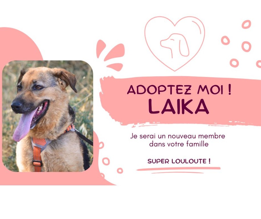 Laika est née en décembre 2023, pèse 17 kg, est stérilisée et négative leishmaniose.