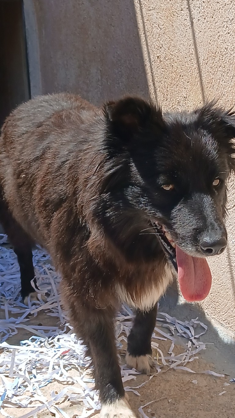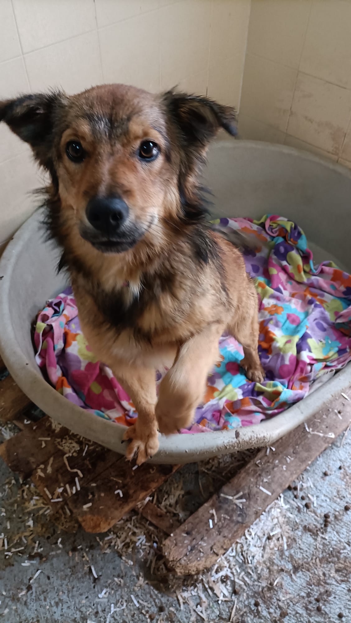 Son histoire : elle a vécu dans la rue depuis sa naissance, d'où sa peur. Sa mère est une Border Collie que nous essayons d'attraper et qui vit toujours dans la rue. Ses frères et sœurs de portée ont disparu. Ils sont peut-être morts de faim, ou bien quelqu'un en a recueilli un. Les voisins n'ont pas pu nous le dire.