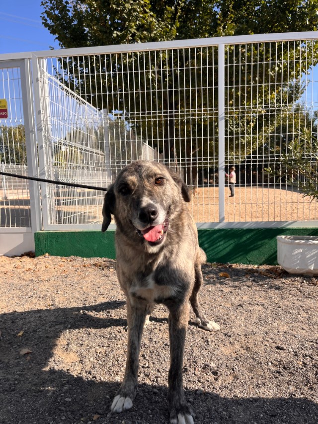 Comportement et sociabilité: Leta est à Cuencanimal depuis longtemps, nous voulions tellement la diffuser mais en même temps cela nous fait peur car elle était très peu sûre d’elle et très prudente, elle a eu besoin de beaucoup de travail et de répétitions pour accepter le collier, la laisse et enfin la promenade. A son arrivé au refuge, il lui a fallu relativement peu de temps pour faire confiance aux soigneurs et se laisser caresser, elle a toujours aimé les câlins, et maintenant (dans son environnement) elle s’approche de tout le monde. Mais à l'extérieur, ses craintes refont surface. Nous ne nous sommes pas découragés, en lui laissant du temps et en travaillant de manière positive et après quelques péripéties, nous avons réussi à la faire sortir en laisse en l’emmenant dans une zone neutre (maison privée avec jardin) : elle s’est promenée seule et nous sommes rentrés sans aucun incident. Elle doit encore s’améliorer mais elle commence à apprécier la promenade et à mieux marcher en laisse. Elle se laisse manipuler chez le vétérinaire et pour y aller, si elle n'aime pas beaucoup la voiture, elle s'y résigne sans faire d'histoires. Ce qui est bien avec Leta, c’est qu’elle est très gourmande (elle attend avec impatience l’heure du repas) et avec de délicieuses friandises, on peut la faire travailler et progresser, elle apprécie aussi beaucoup qu’on l’encourage avec une voix douce. C’est une chienne aussi belle à l’intérieur qu’à l’extérieur, car personne ne peut nier que son pelage particulier, sa tête expressive, sa curiosité et son innocence sont frappants et nous font tous craquer !