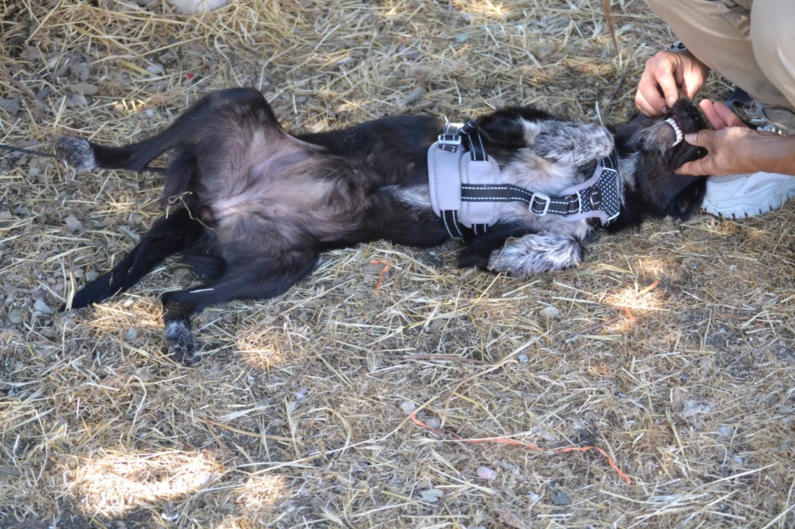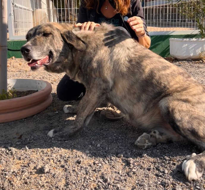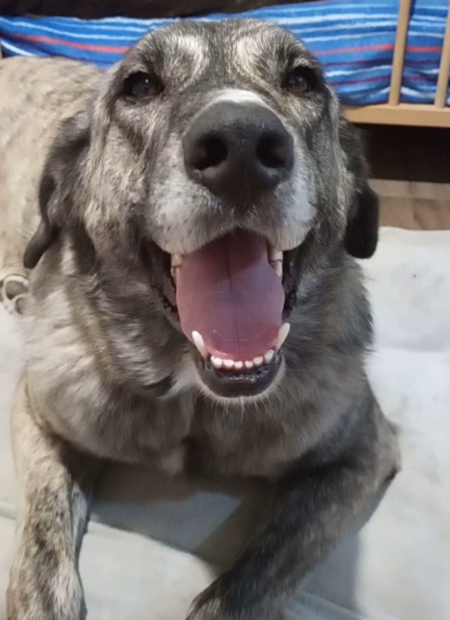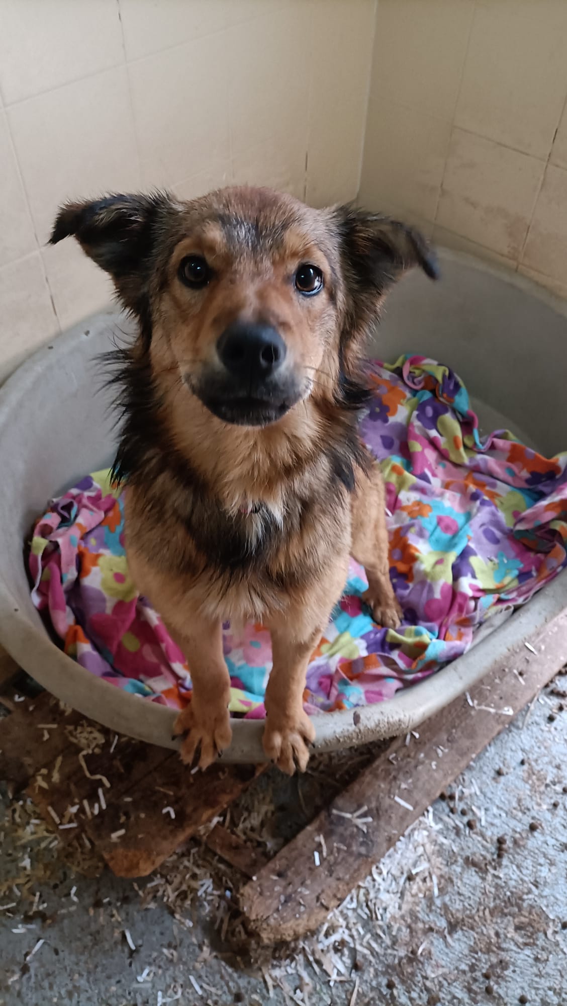 Son histoire : un des nombreux refuges avec qui nous collaborons nous a appelé à l’aide pour une autre « ferme des horreurs » où plusieurs chiens vivaient dans des conditions terribles, sans accès à l’eau, affamés, sans abri contre les intempéries, plein de parasites, avec des plaies ouvertes, « soignés » à coups de bâtons et sans aucun soins vétérinaires (et en toute impunité, depuis des années, pour le propriétaire). Nous avons pu récupérer 4 chiens et d’autres ont reçu de l’aide grâce à l’implication de bonnes personnes, des particuliers et des refuges, mais sans aucune aide financière des autorités. Sauver Derya a été très émouvant car nous avons également pu emmener son chiot avec elle. Cela aurait été horrible de laisser l’un ou l’autre là-bas.