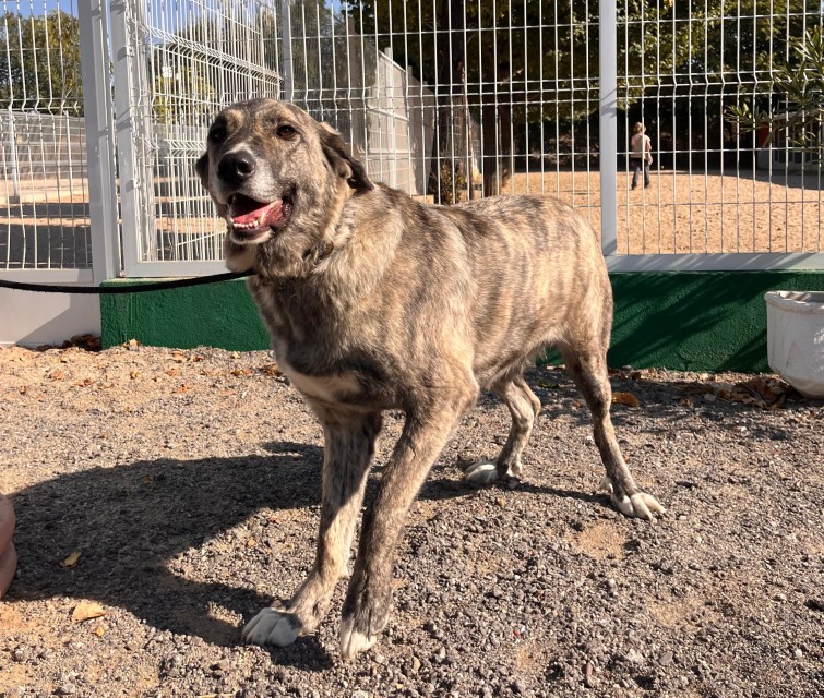 Comportement et sociabilité : nous savons que son précédent propriétaire ne la traitait pas bien (ni elle, ni ses compagnons issus de cette horrible ferme) : elle ne mangeait pas tous les jours et était battue. Malgré tout, Derya est très affectueuse, mais si on fait un mouvement brusque près d’elle, elle a peur, comme si elle craignait qu’on la frappe à nouveau, avant de reculer de quelques mètres... Heureusement, dès qu’on l’appelle, elle revient immédiatement. Cela montre l'étendue de ce qu’elle a subi. En promenade elle se laisse beaucoup emporter par son odorat, elle a l’instinct de chasse mais selon son précédent propriétaire elle n’est pas bonne à la chasse, ce qui lui a sauvé la vie et lui a permis d’arriver à Cuencanimal. Elle est très docile et se laisse soigner sans problème chez le vétérinaire. C’est une gentille chienne. Elle est gloutonne car elle a souvent faim mais elle s’entend bien avec son copain de box et ils échangent leur gamelle sans se disputer. Elle est très belle et nous sommes émus par son bon caractère quand on connait son passé.
